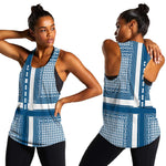 Comoros Women Racerback Tank - Blue and White Traditional Geometric Pattern and National Flag Detail