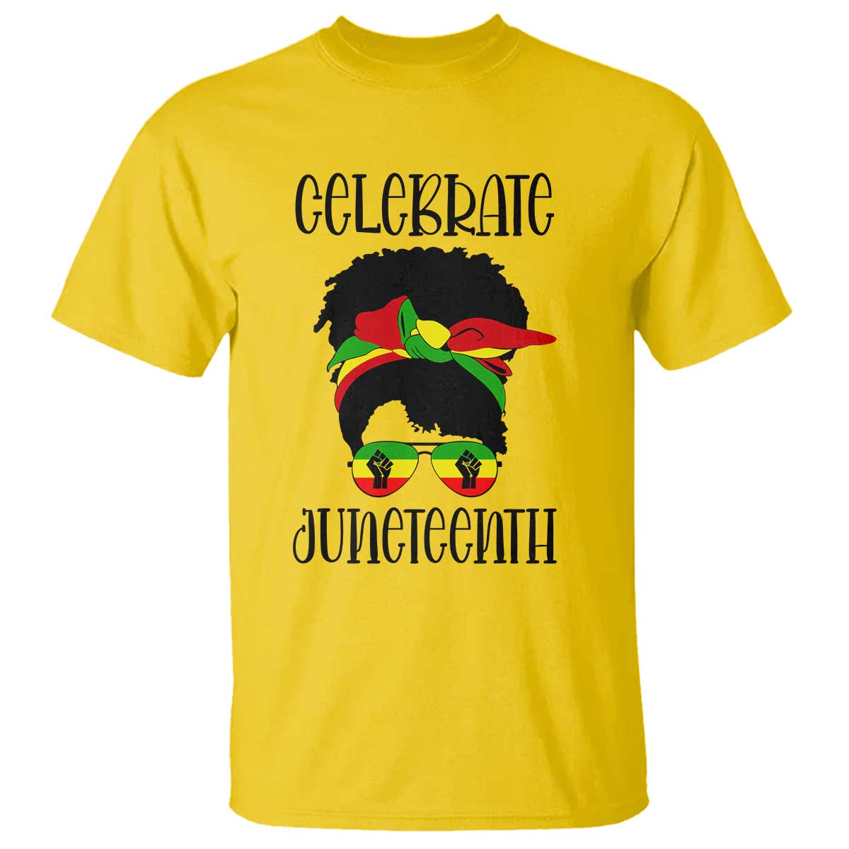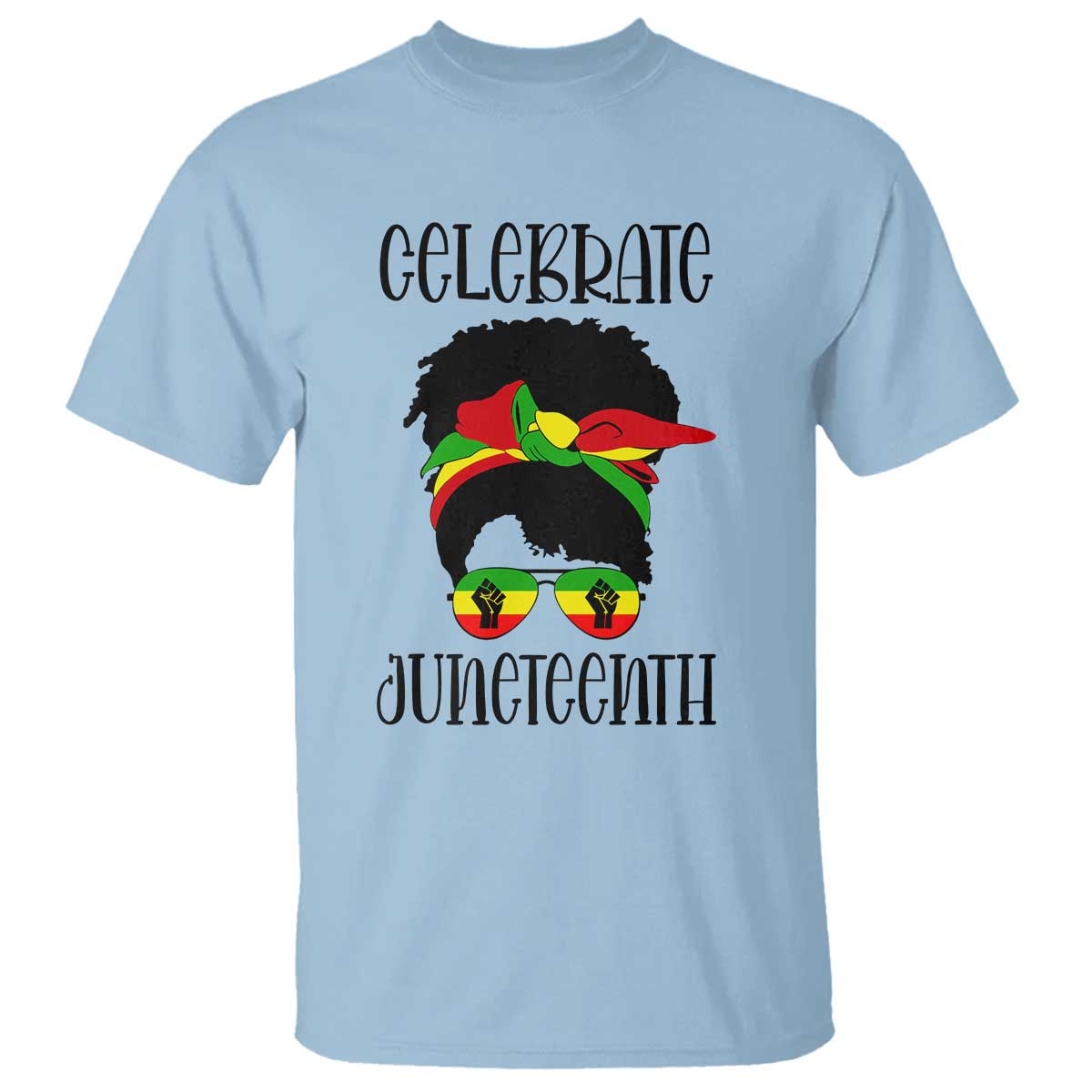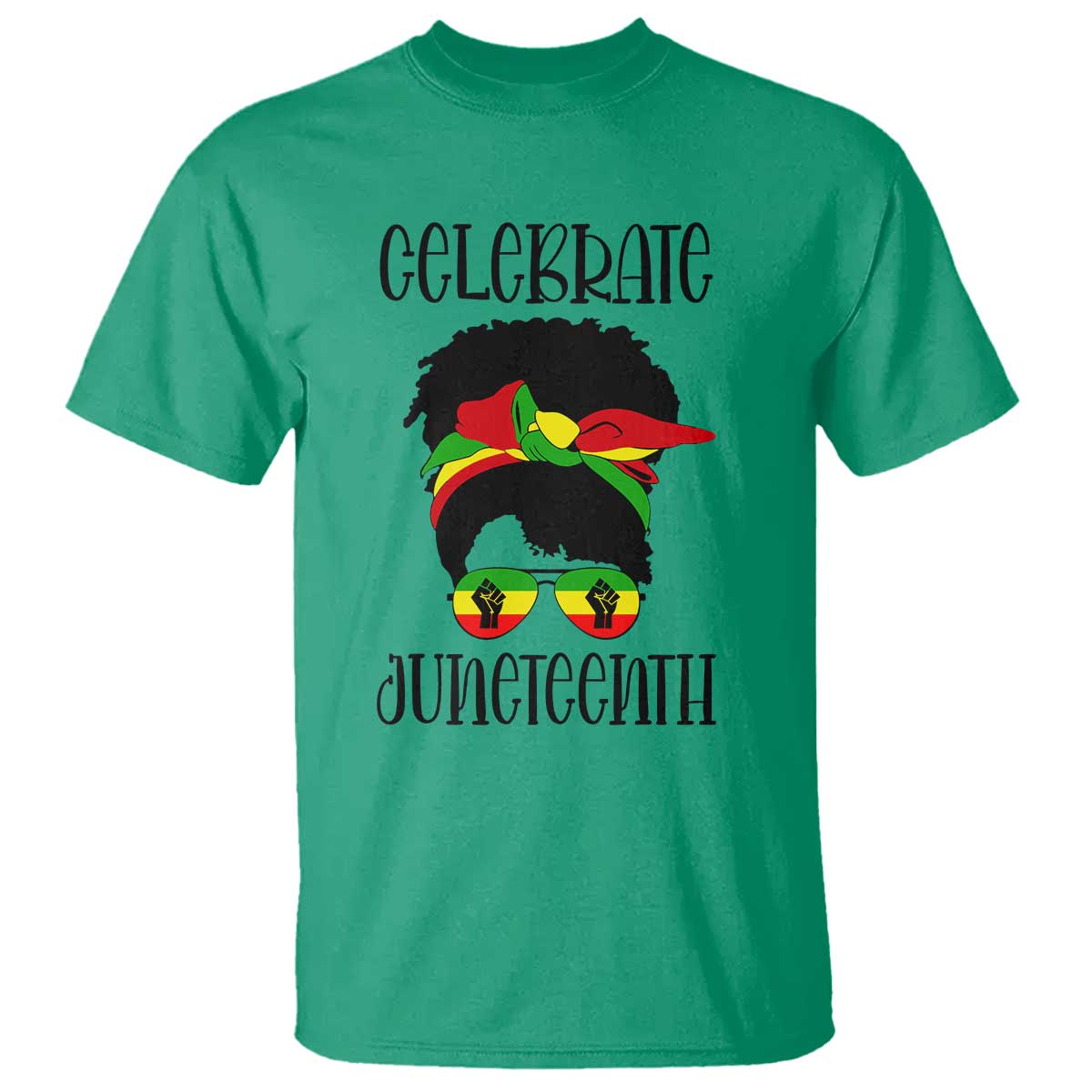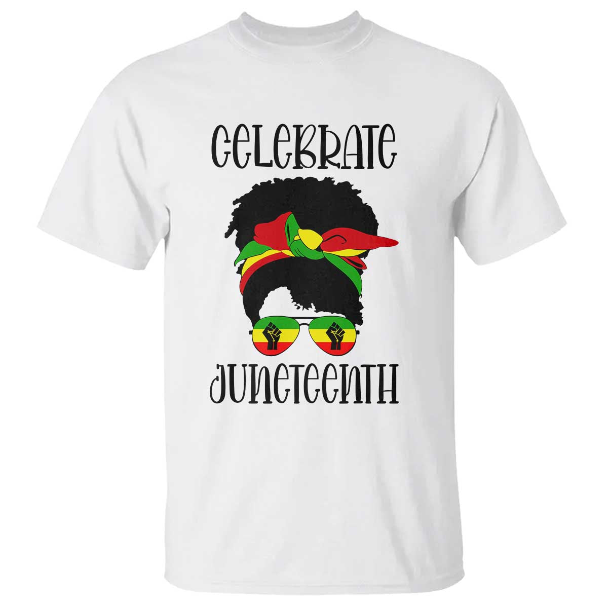Black Women T Shirt Celebrate Juneteenth Messy Bun