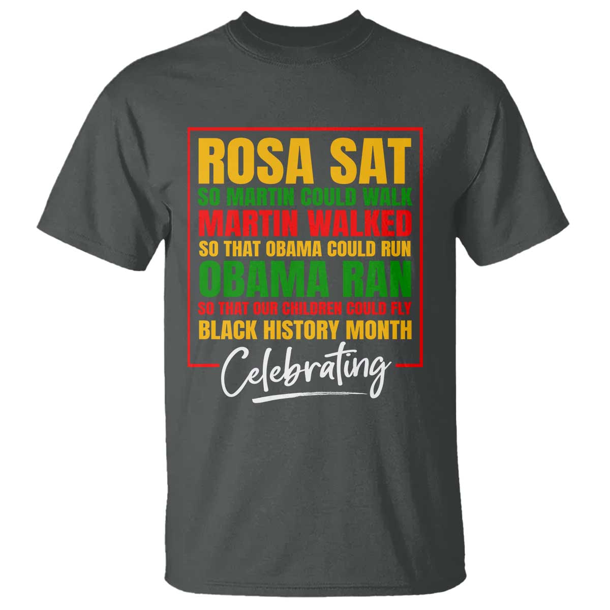 Celebrate Black History Month T Shirt Rosa Sat Martin Walked Obama Ran So Our Children Could Fly Inspiration