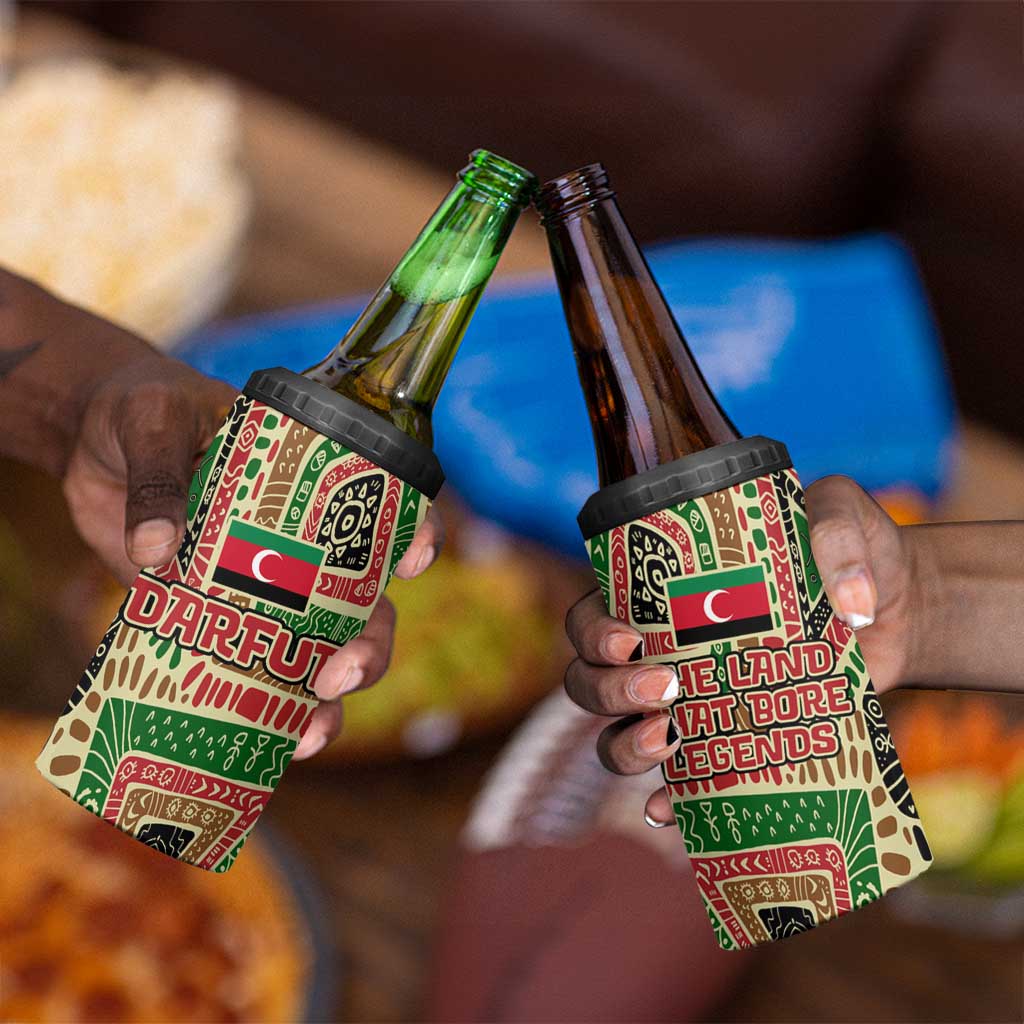 Darfur Sudan 4 in 1 Can Cooler Tumbler Red Green Beige Tribal Pattern