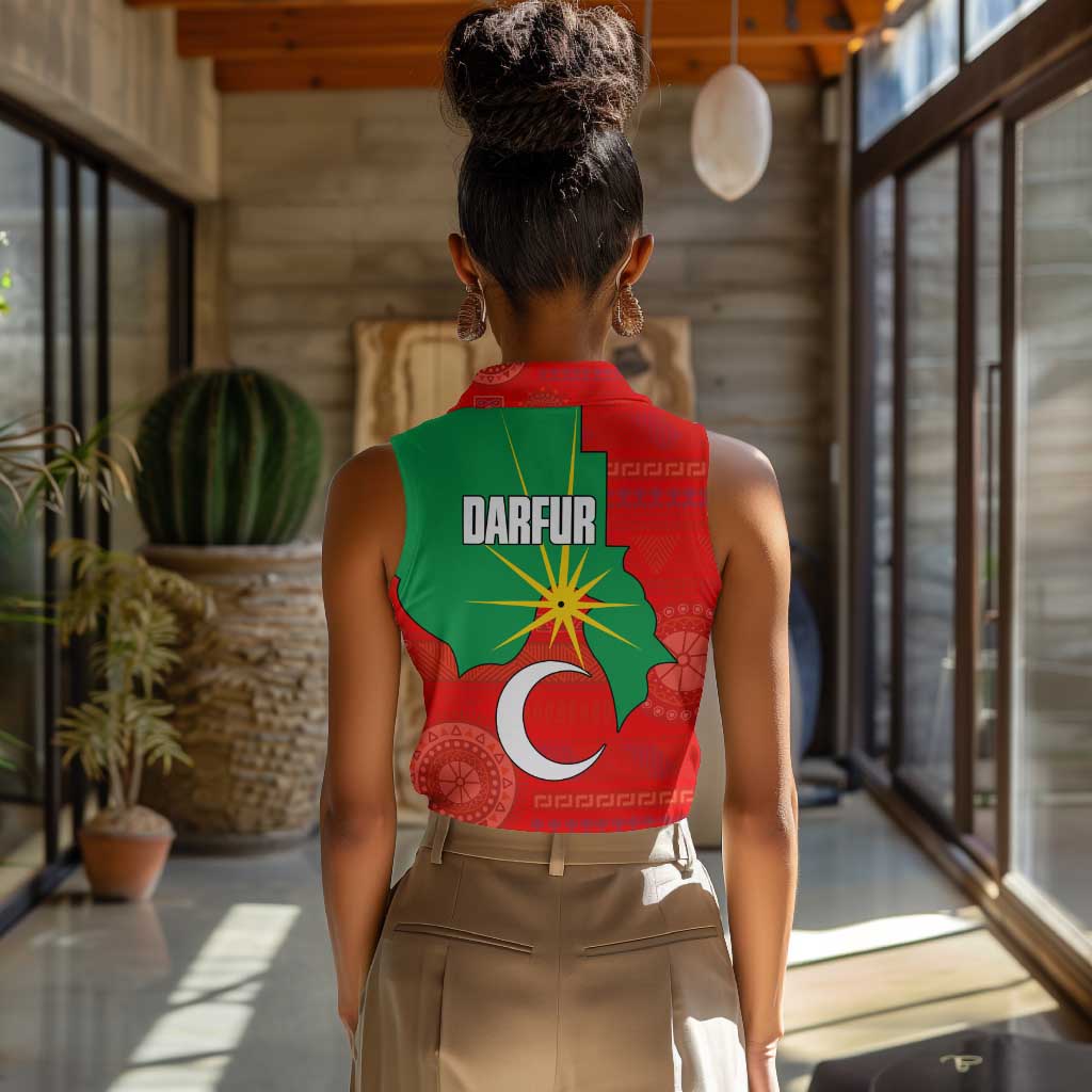 Darfur Sudan Women Sleeveless Polo Shirt Red Green Yellow Crescent Star TS04