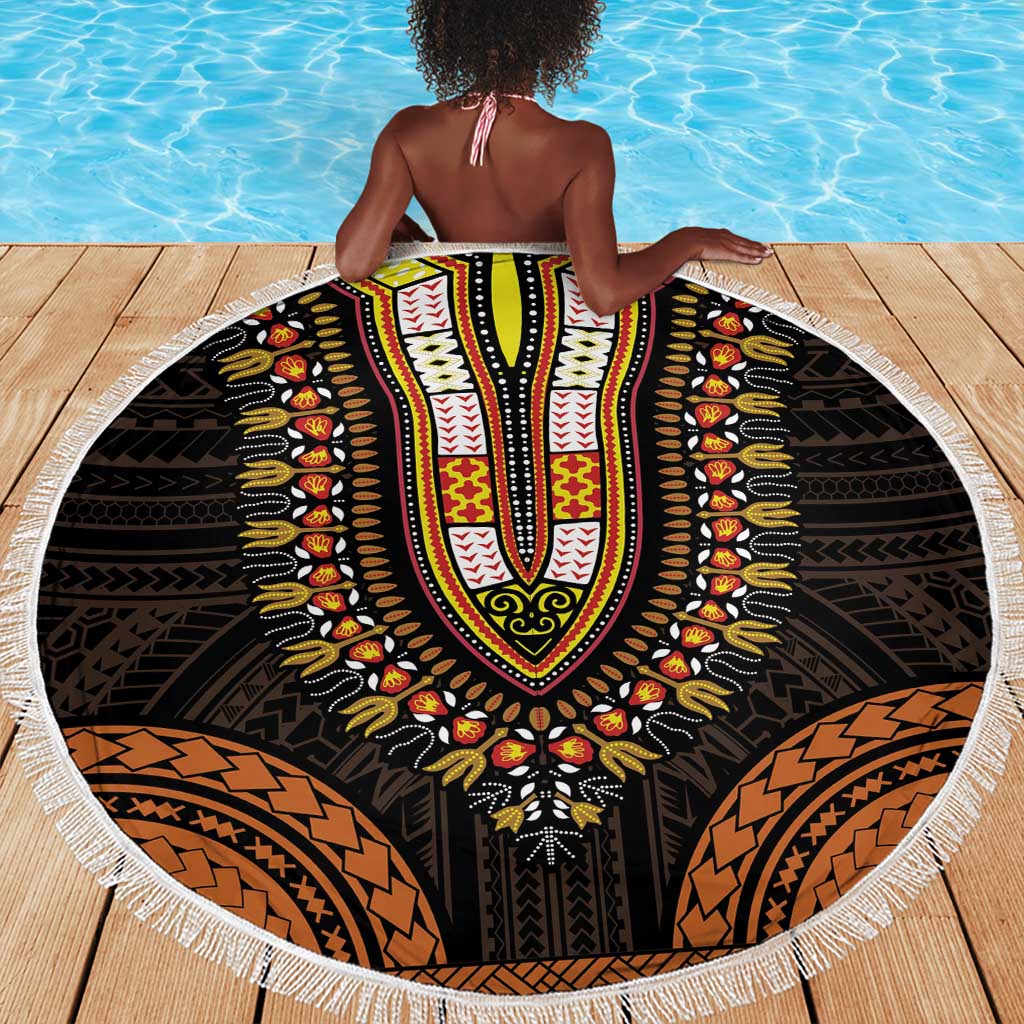 African Dashiki and Polynesian Pattern Beach Blanket Gold