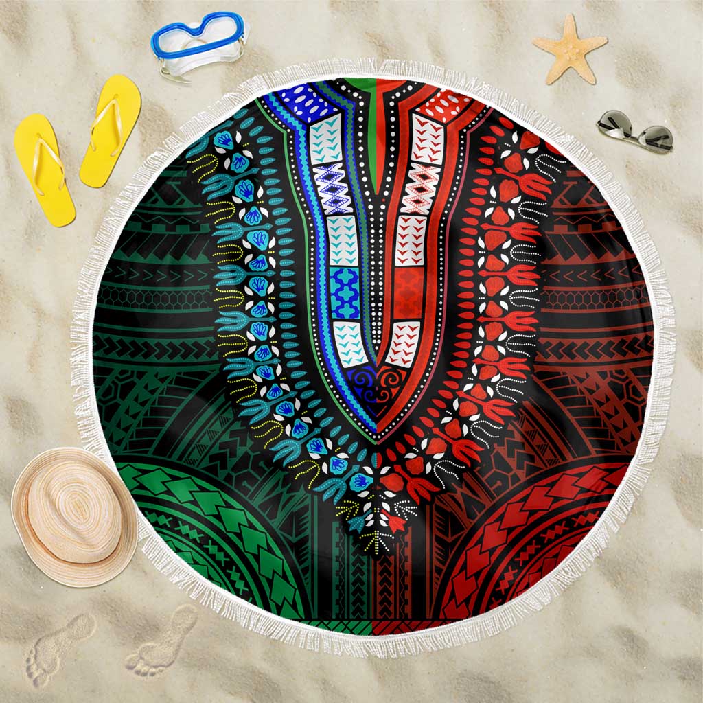 African Dashiki and Polynesian Pattern Beach Blanket Half Green-Red