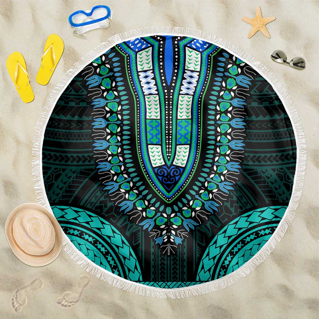 African Dashiki and Polynesian Pattern Beach Blanket Teal