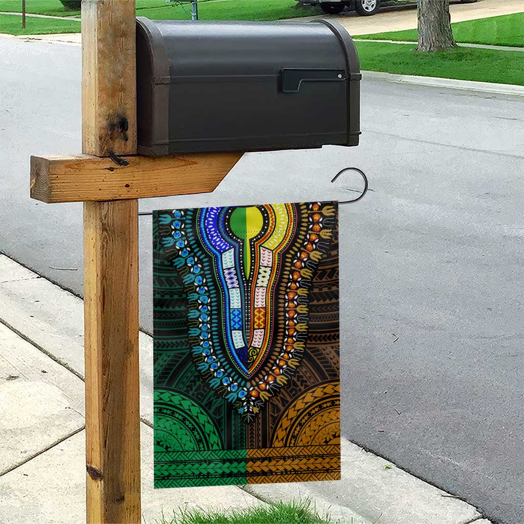 African Dashiki and Polynesian Pattern Garden Flag Half Green-Gold