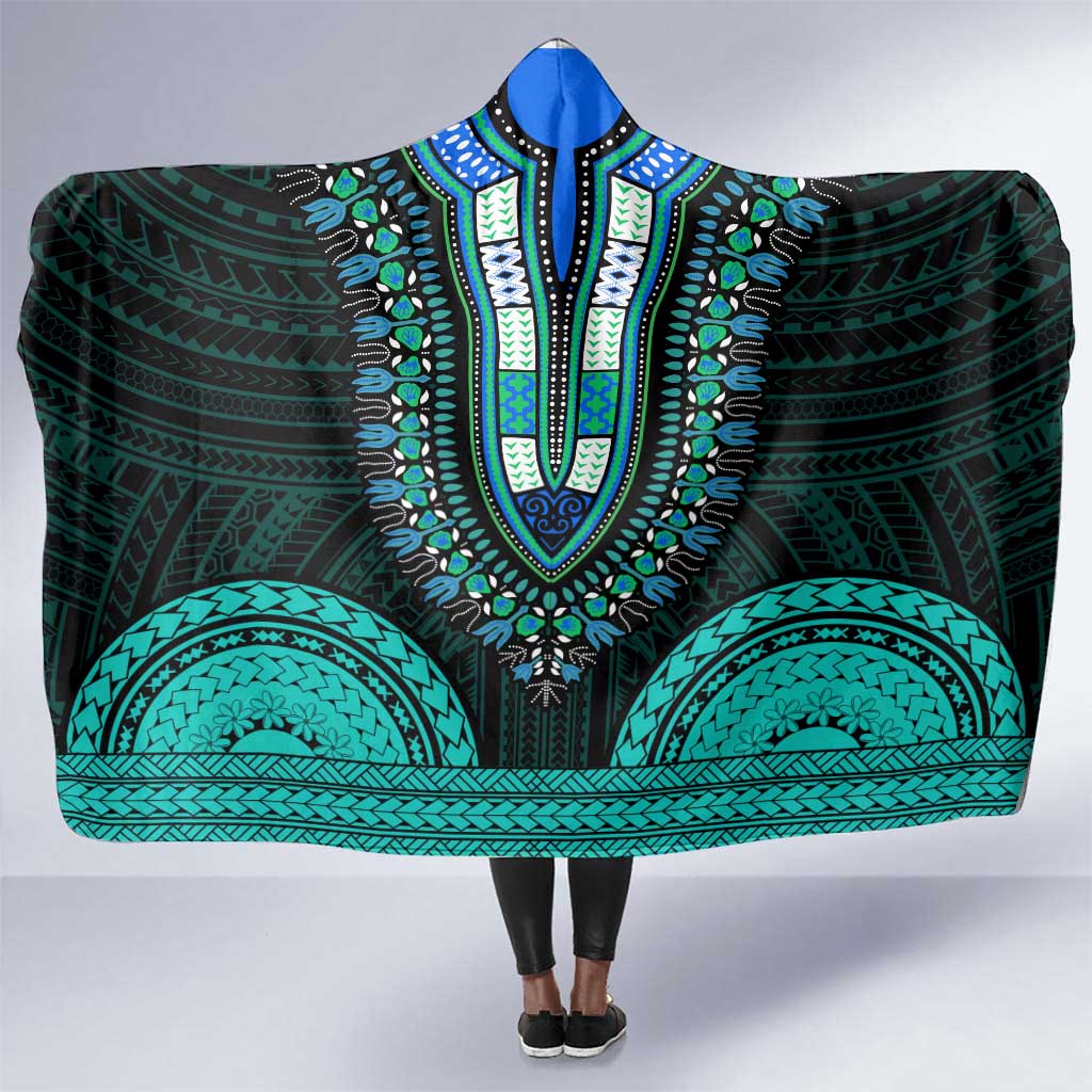 African Dashiki and Polynesian Pattern Hooded Blanket Teal