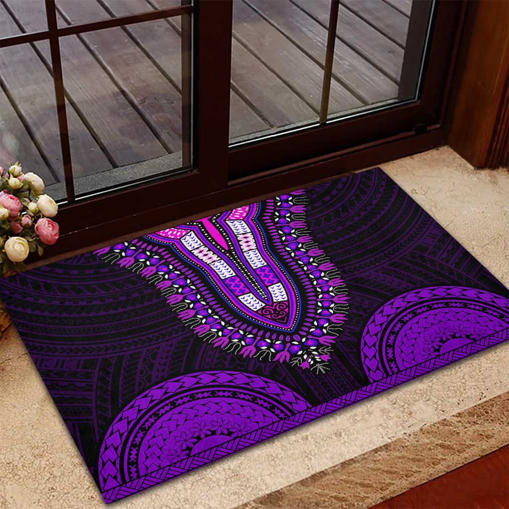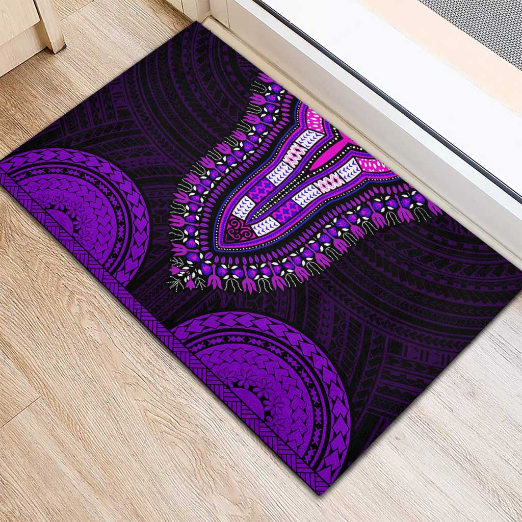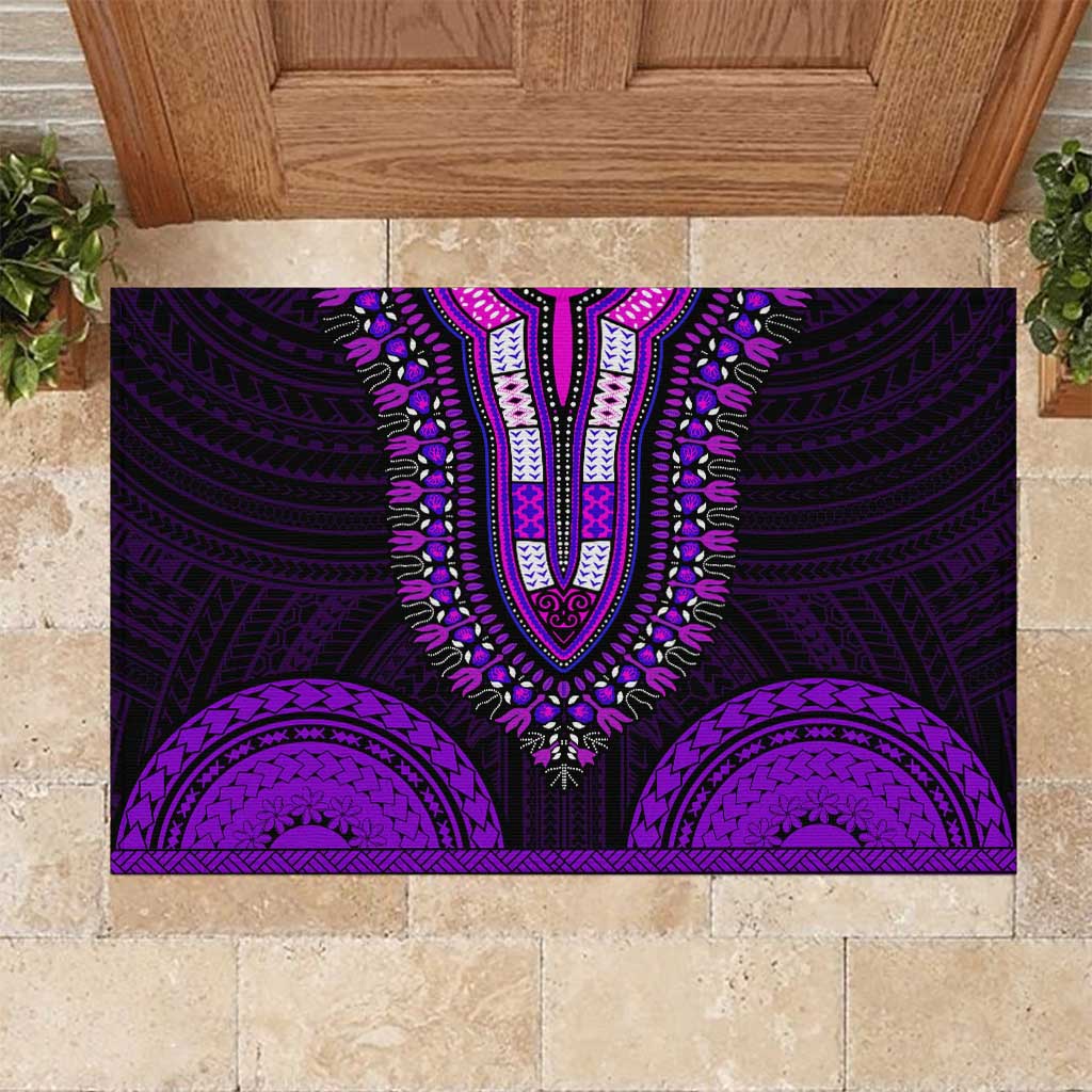 African Dashiki and Polynesian Pattern Rubber Doormat Purple