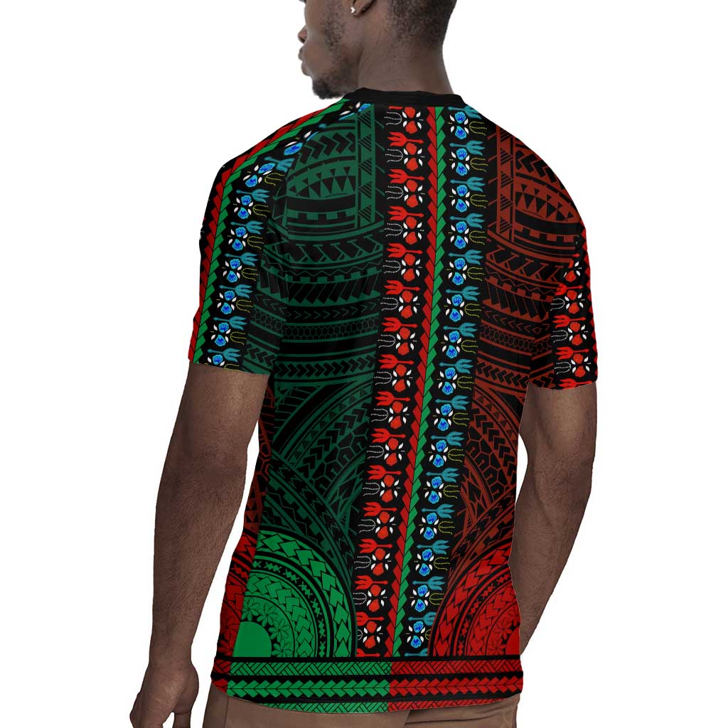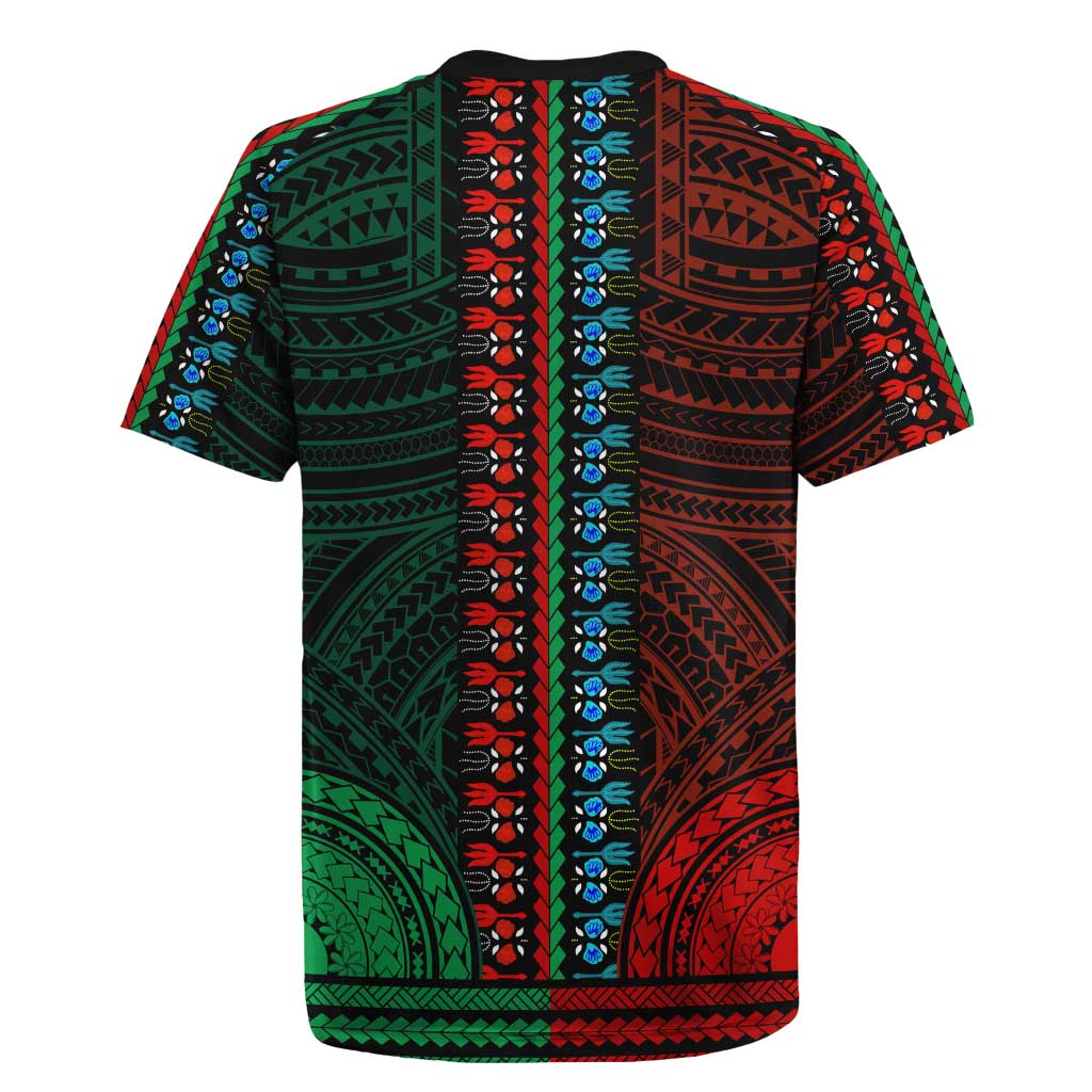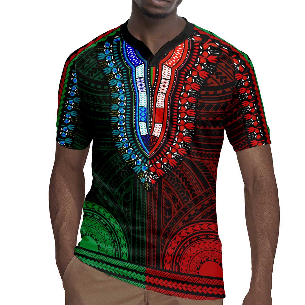 African Dashiki and Polynesian Pattern Rugby Jersey Half Green-Red