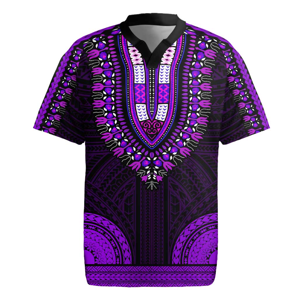 African Dashiki and Polynesian Pattern Rugby Jersey Purple