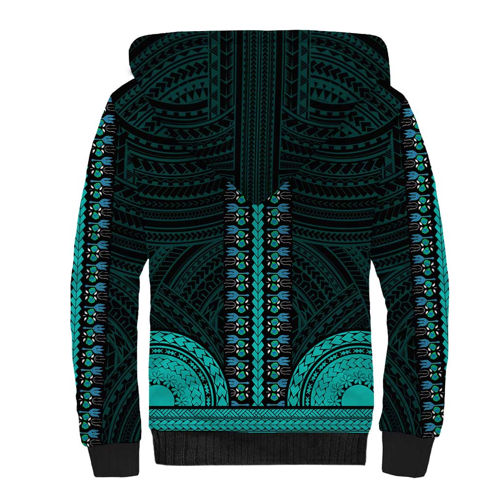 African Dashiki and Polynesian Pattern Sherpa Hoodie Teal LT9
