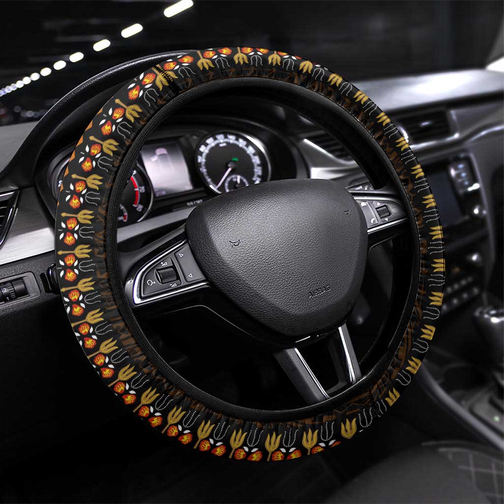 African Dashiki and Polynesian Pattern Steering Wheel Cover Gold LT9