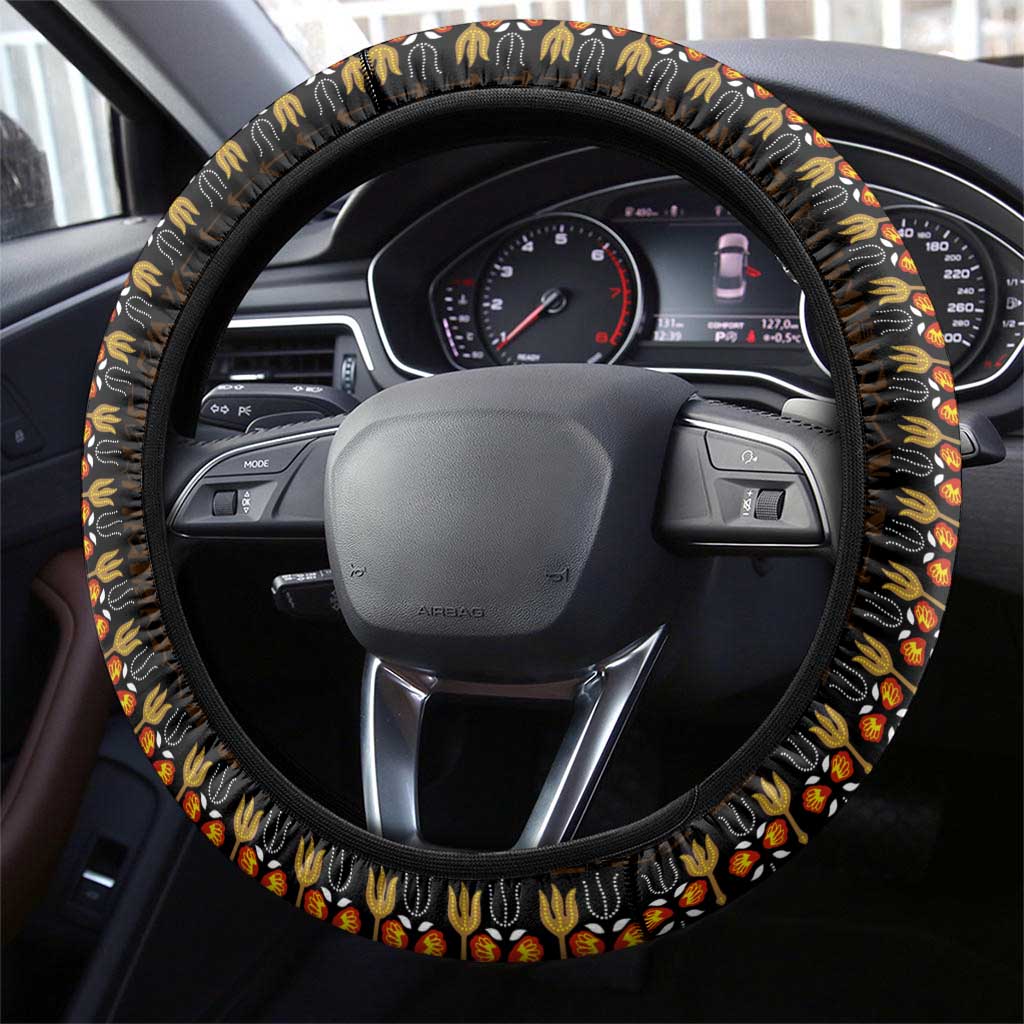 African Dashiki and Polynesian Pattern Steering Wheel Cover Gold
