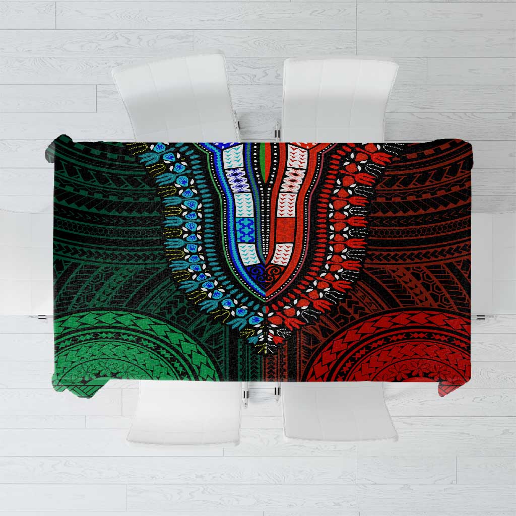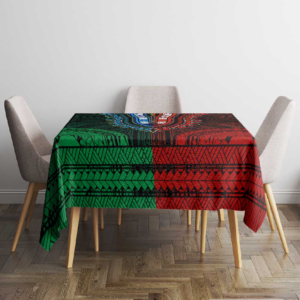 African Dashiki and Polynesian Pattern Tablecloth Half Green-Red