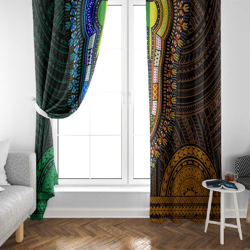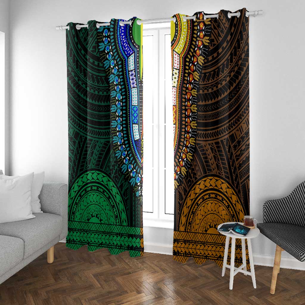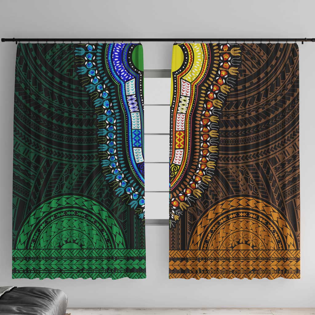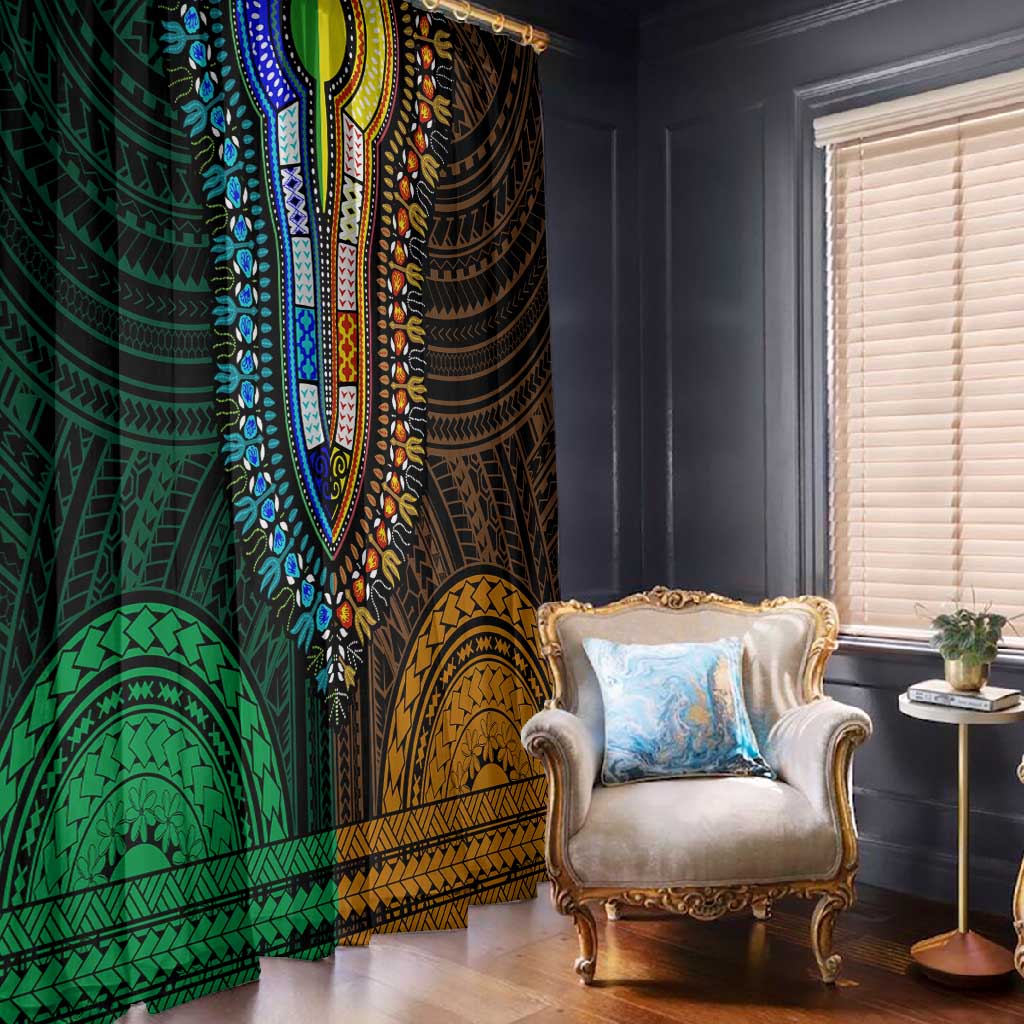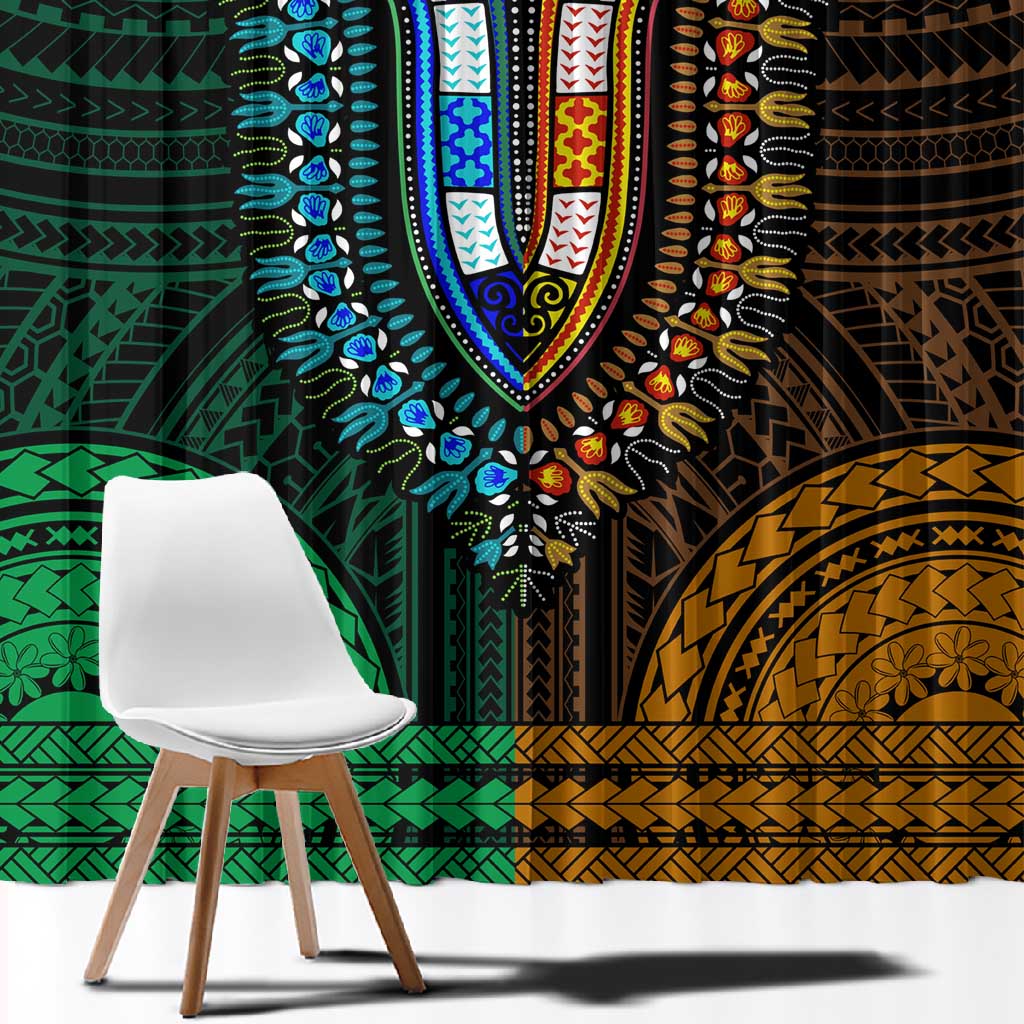 African Dashiki and Polynesian Pattern Window Curtain Half Green-Gold