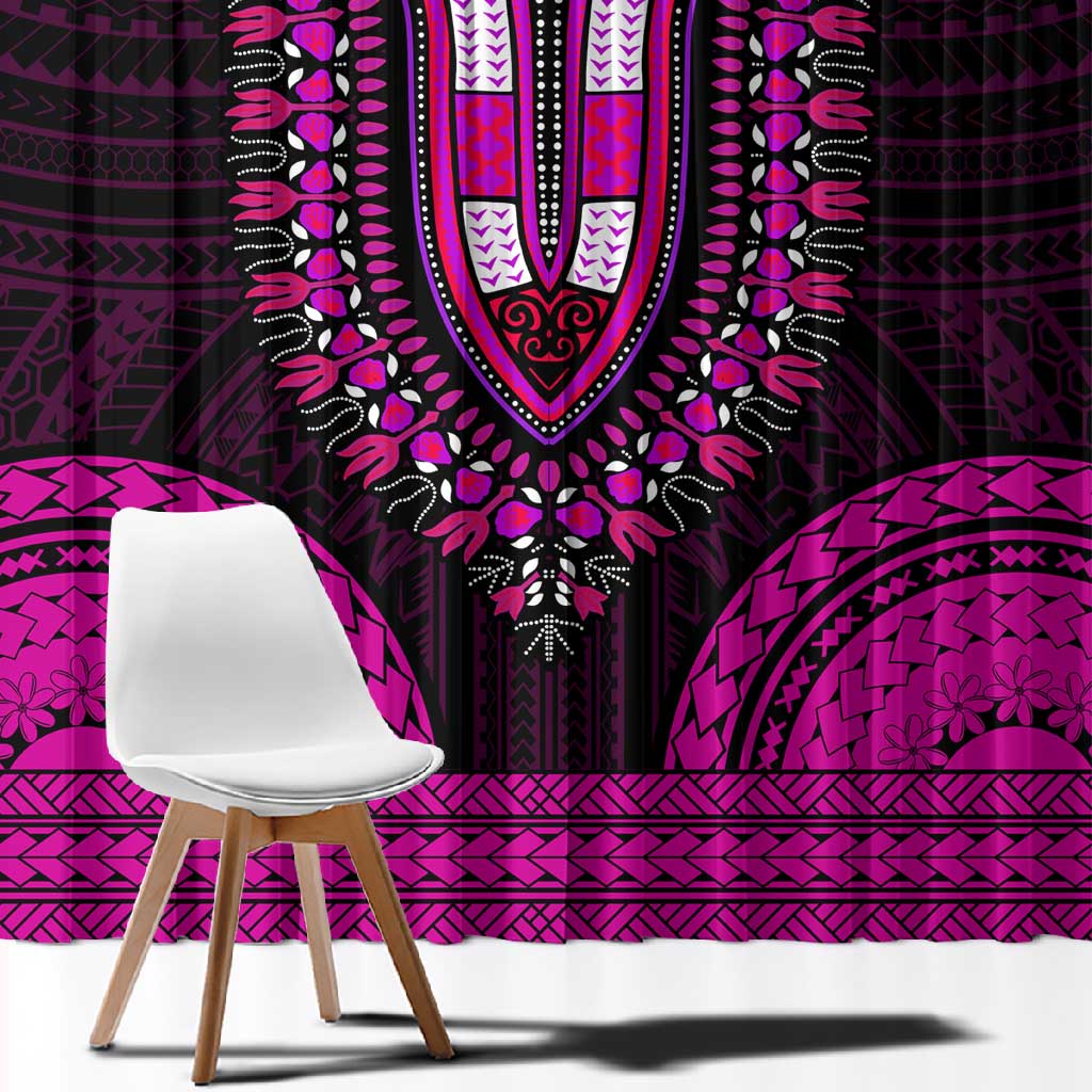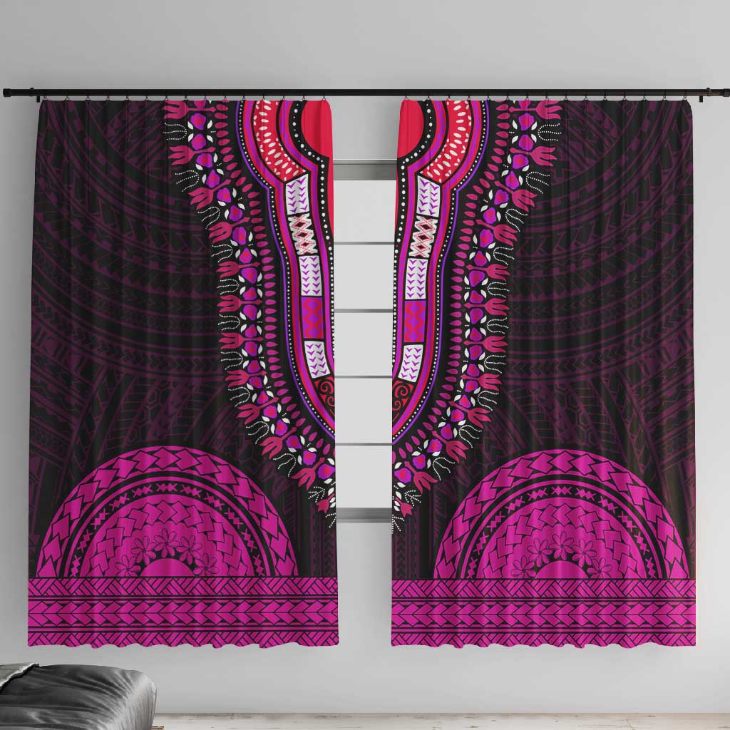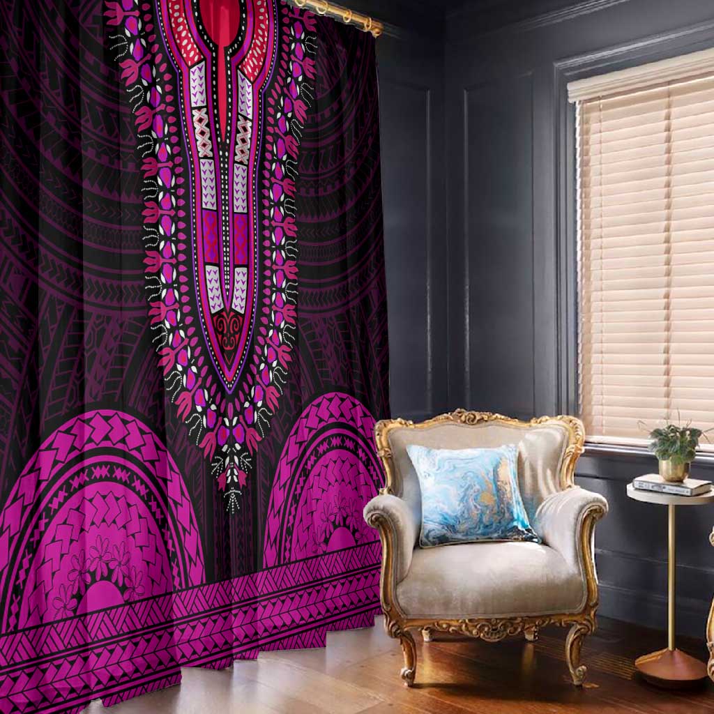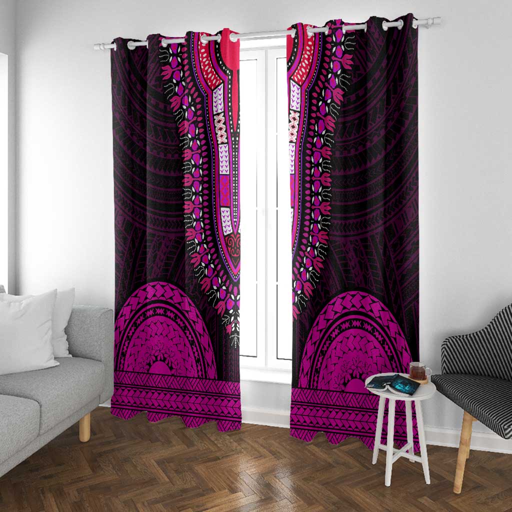 African Dashiki and Polynesian Pattern Window Curtain Pink