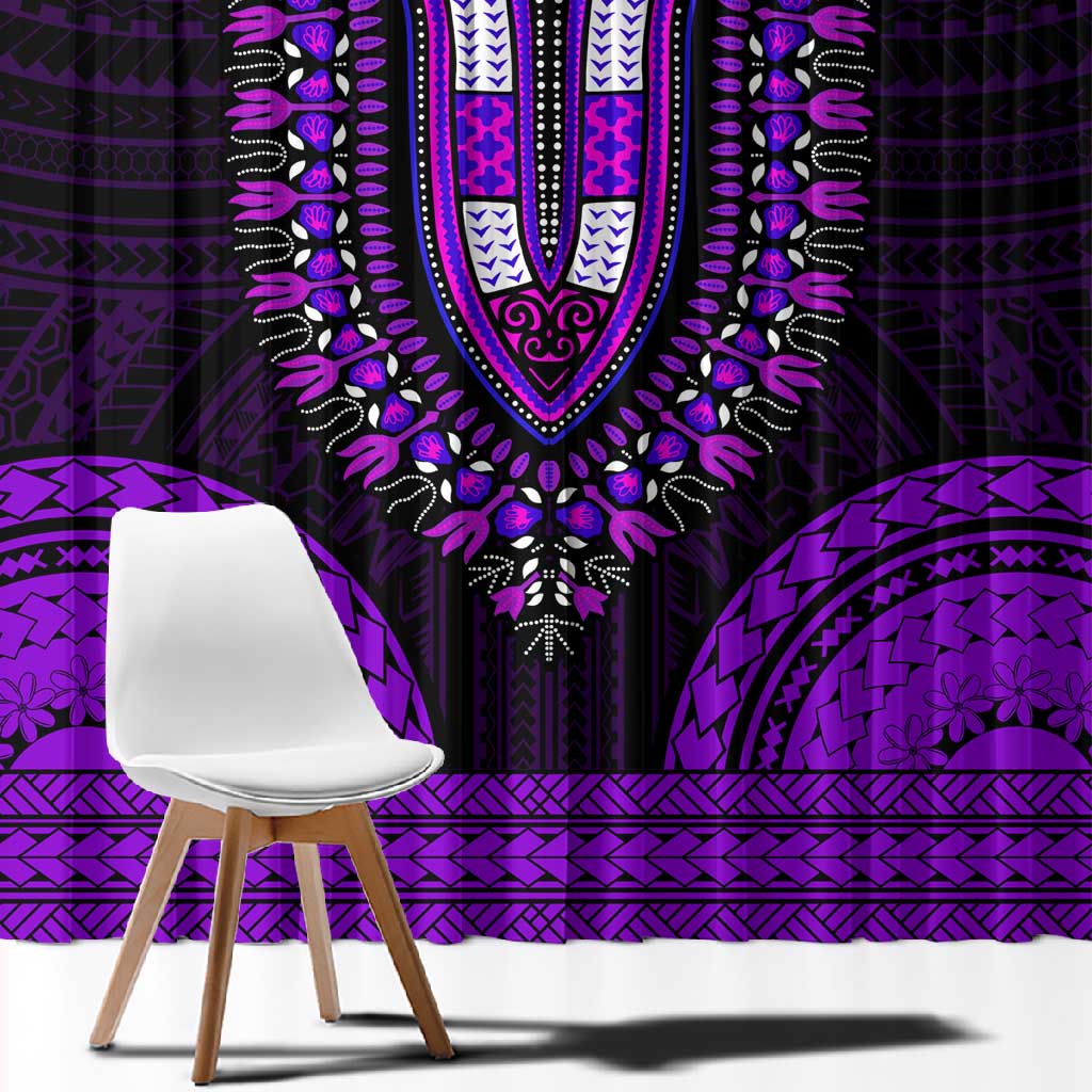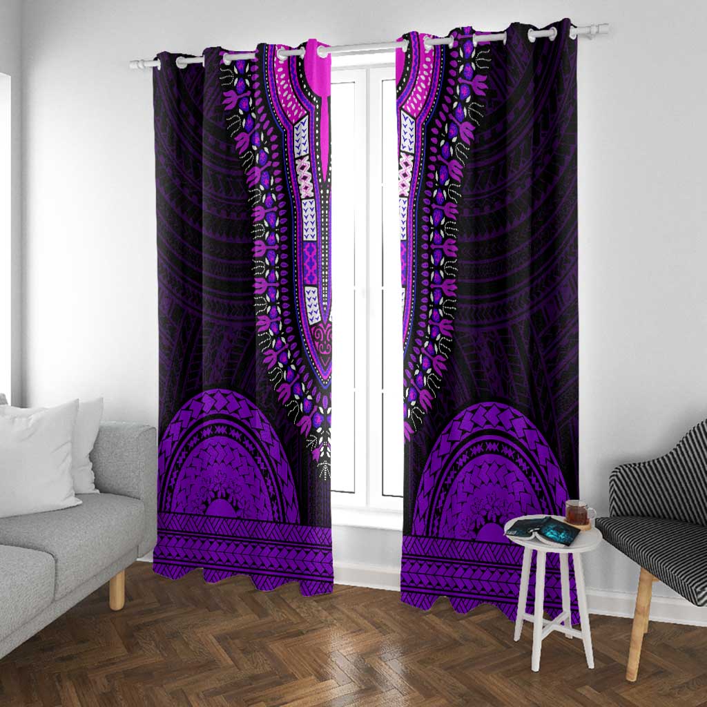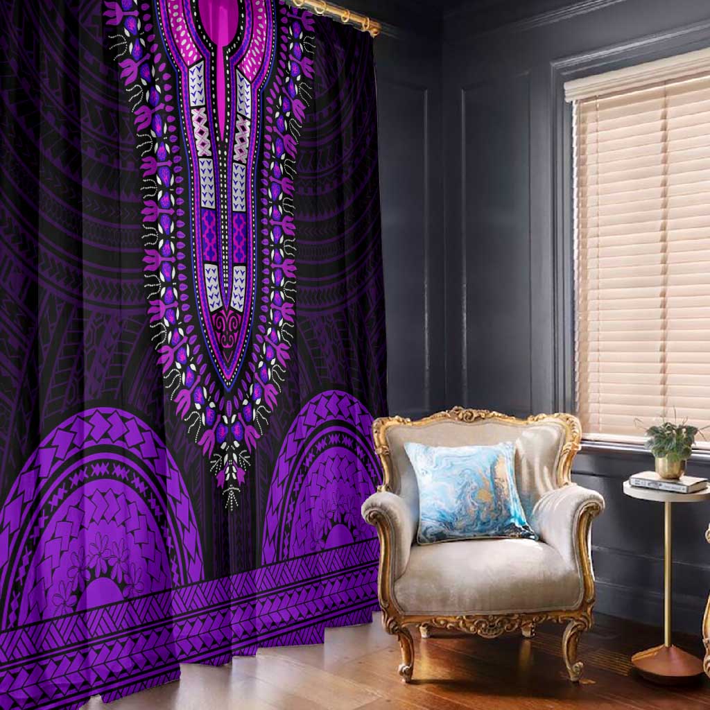 African Dashiki and Polynesian Pattern Window Curtain Purple