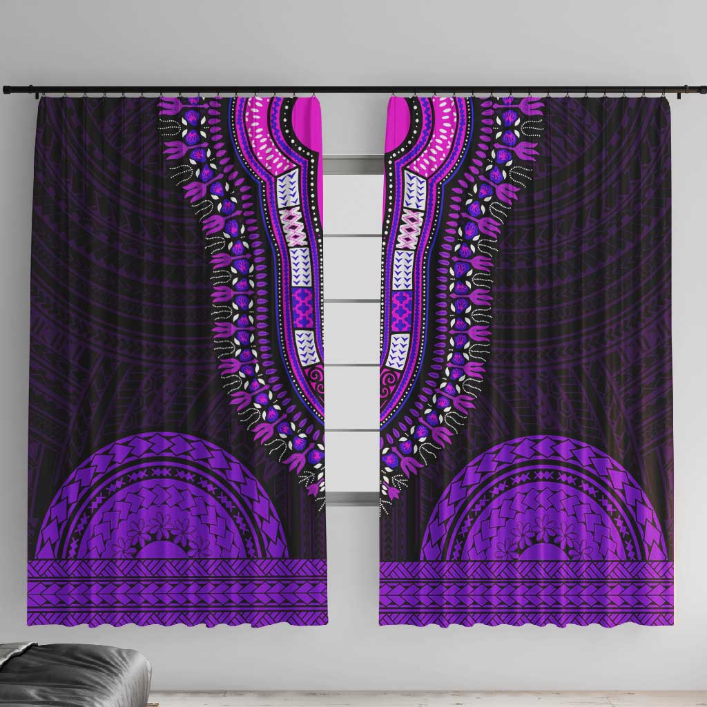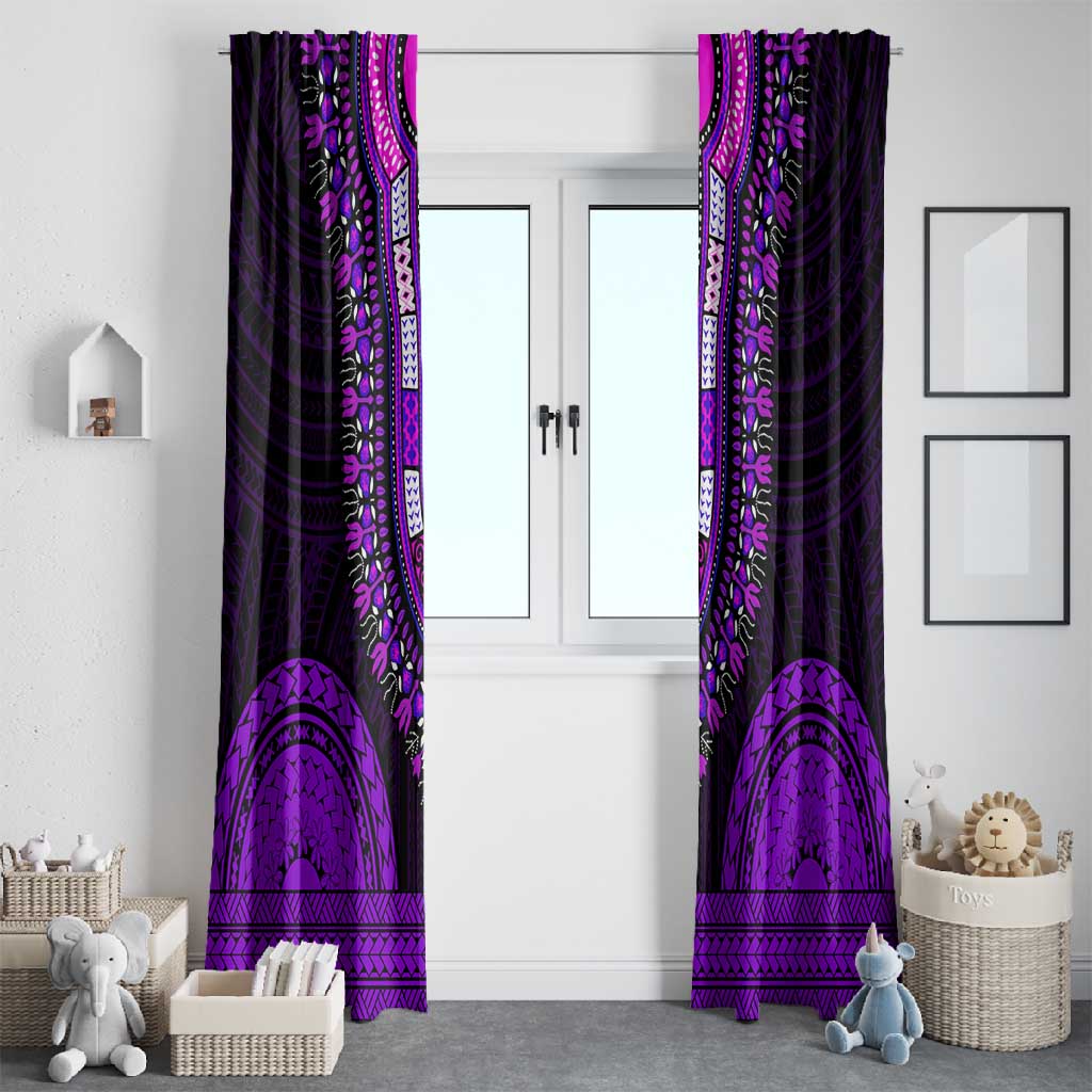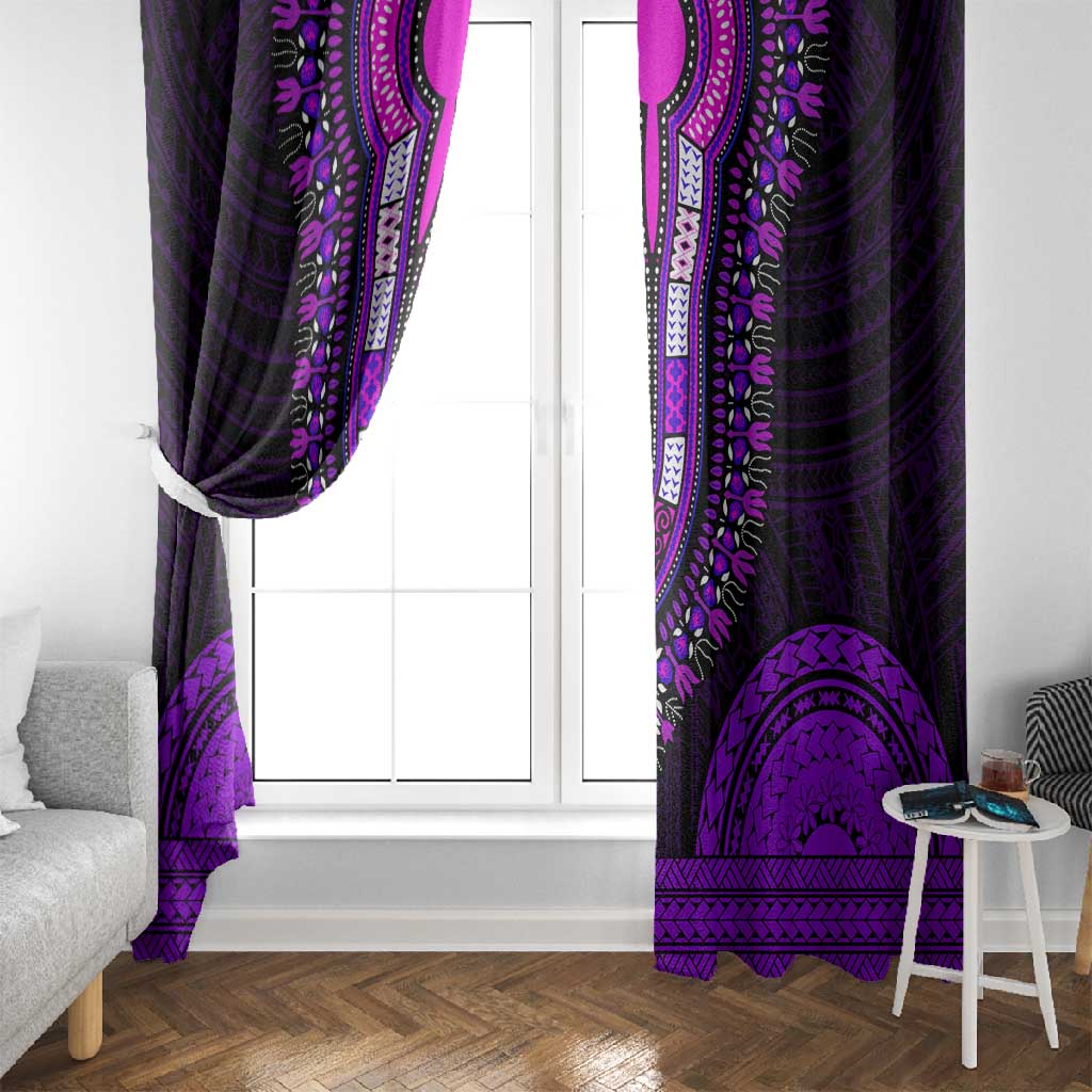 African Dashiki and Polynesian Pattern Window Curtain Purple