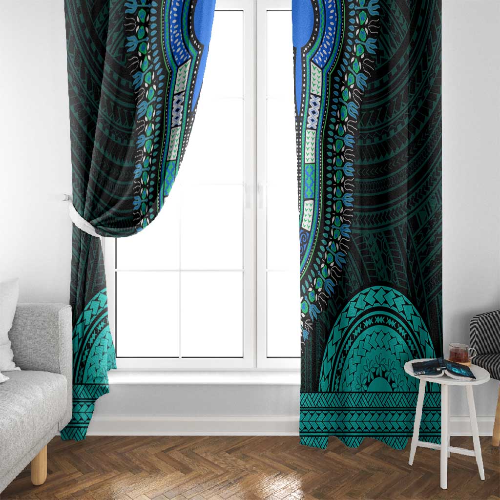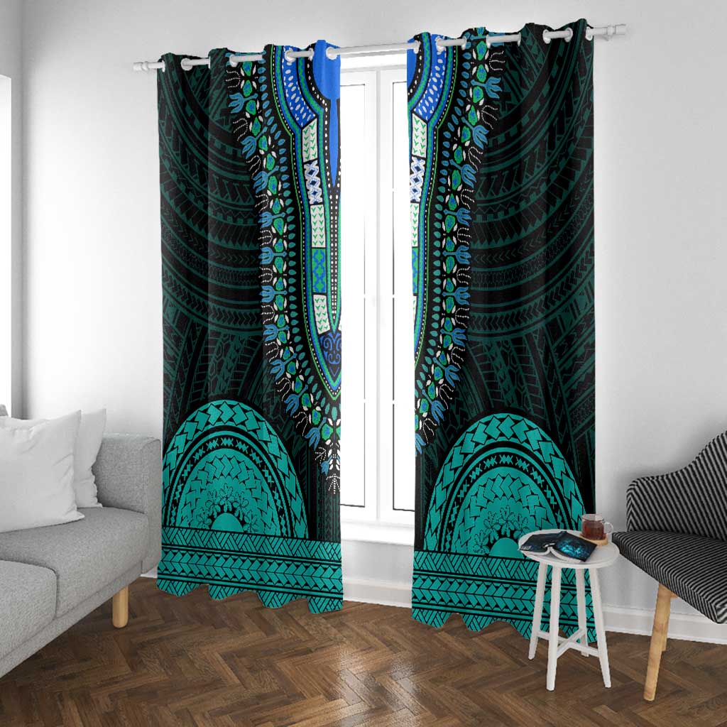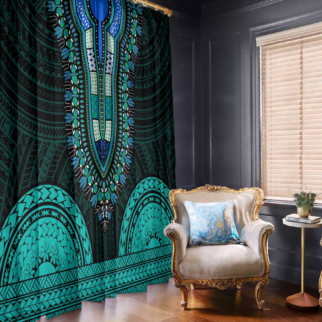 African Dashiki and Polynesian Pattern Window Curtain Teal