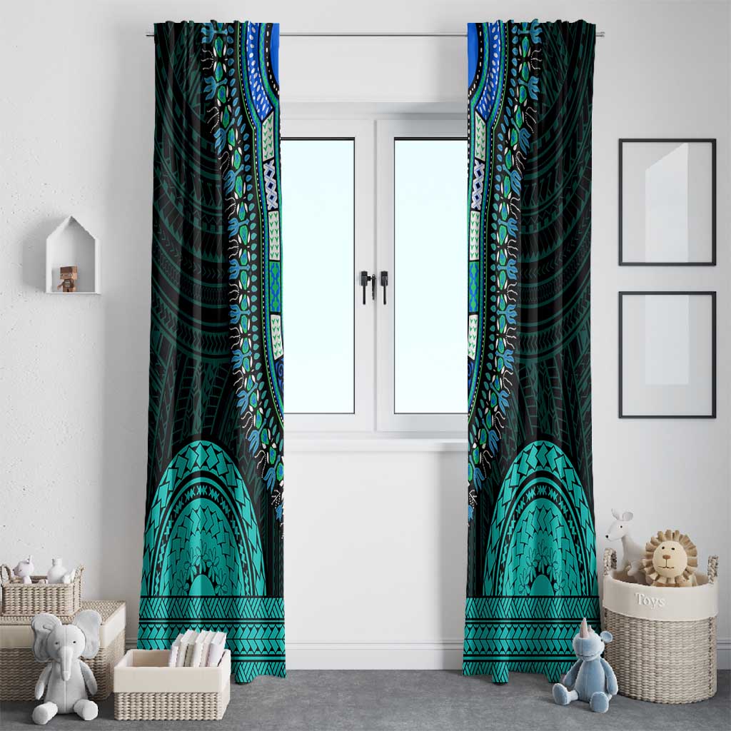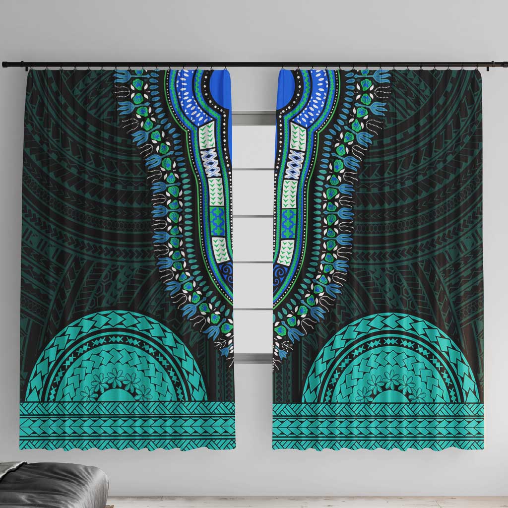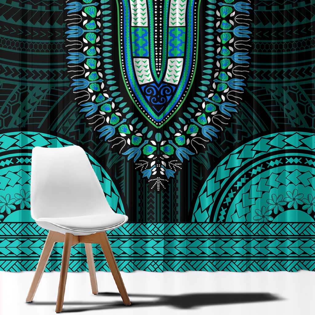 African Dashiki and Polynesian Pattern Window Curtain Teal