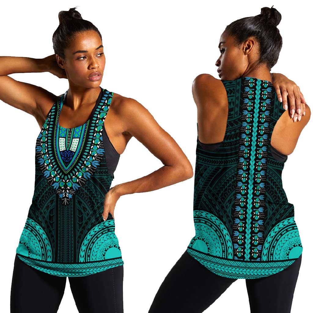 African Dashiki and Polynesian Pattern Women Polo Shirt Teal