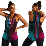 African Dashiki and Polynesian Pattern Women Racerback Tank Half Teal-Pink