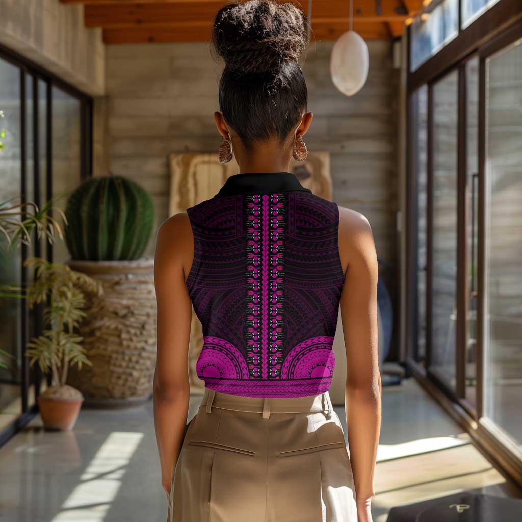 African Dashiki and Polynesian Pattern Women Sleeveless Polo Shirt Pink