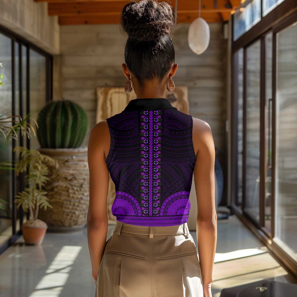 African Dashiki and Polynesian Pattern Women Sleeveless Polo Shirt Purple