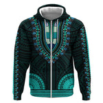 African Dashiki and Polynesian Pattern Zip Hoodie Teal