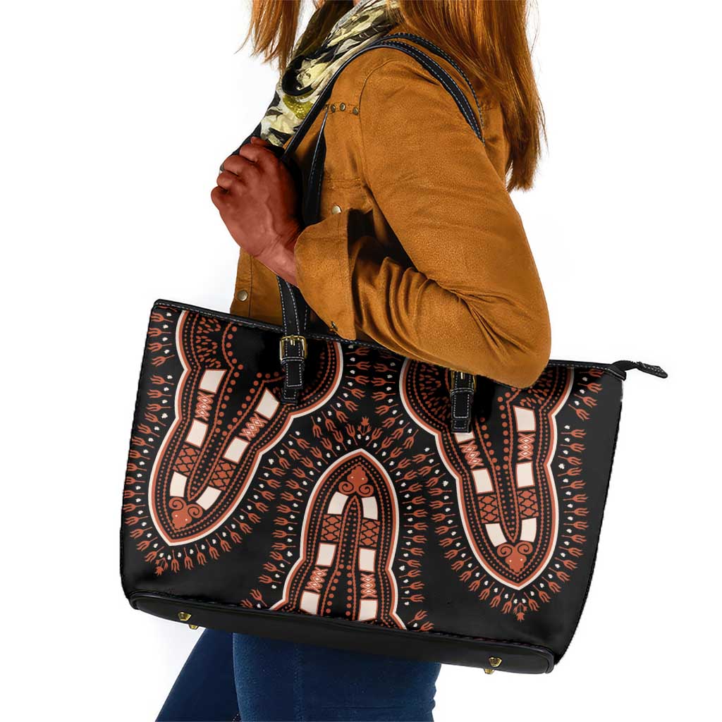 African Dashiki Leather Tote Bag Afro Vintage Pattern