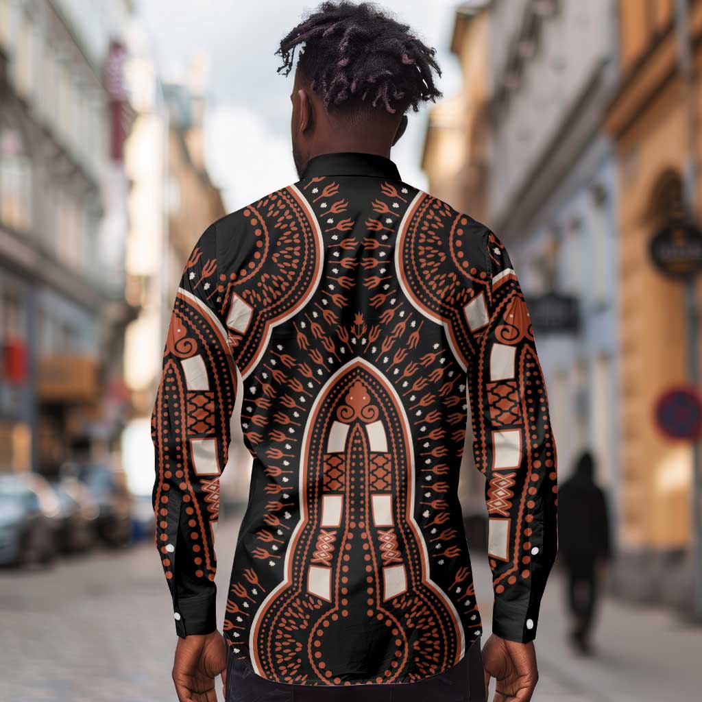 African Dashiki Long Sleeve Button Shirt Afro Vintage Pattern