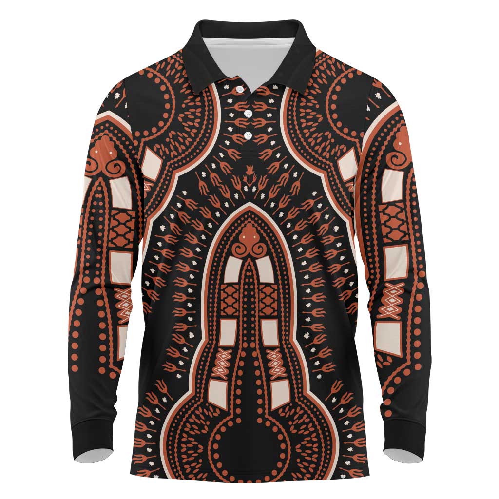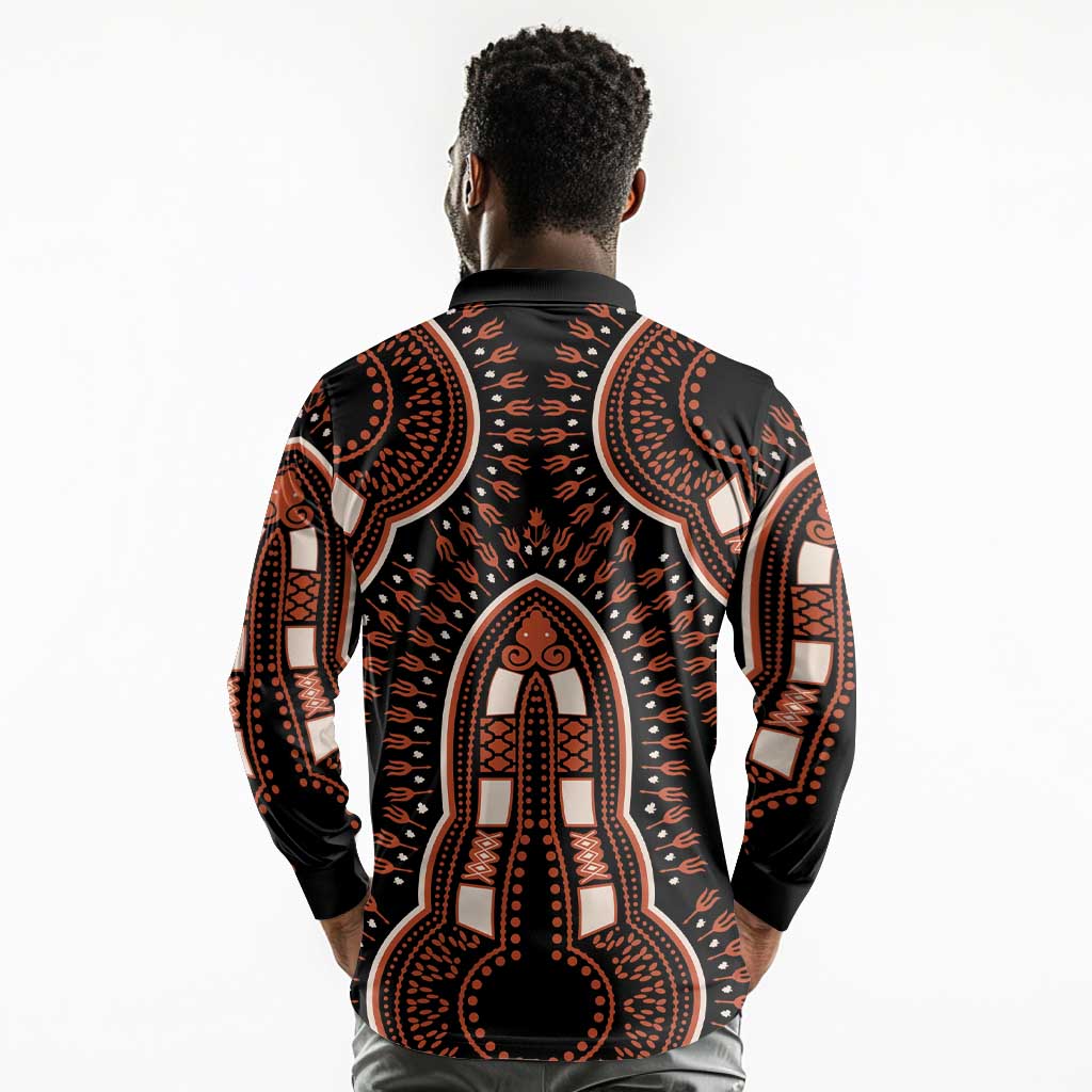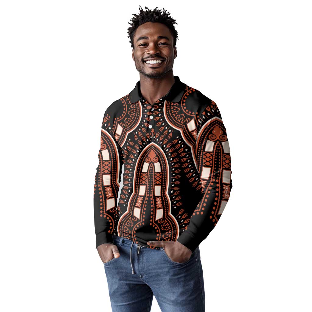 African Dashiki Long Sleeve Polo Shirt Afro Vintage Pattern
