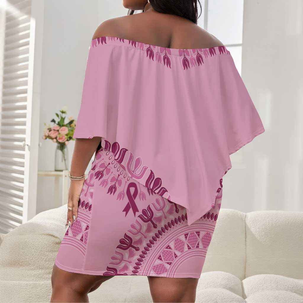 Afro Breast Cancer Awareness Dashiki Off Shoulder Short Dress Glamorous Pink
