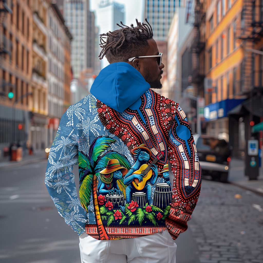 Afro-Caribbean Zip Hoodie African Dashiki Style with Caribbean Music with Blue Iguanas