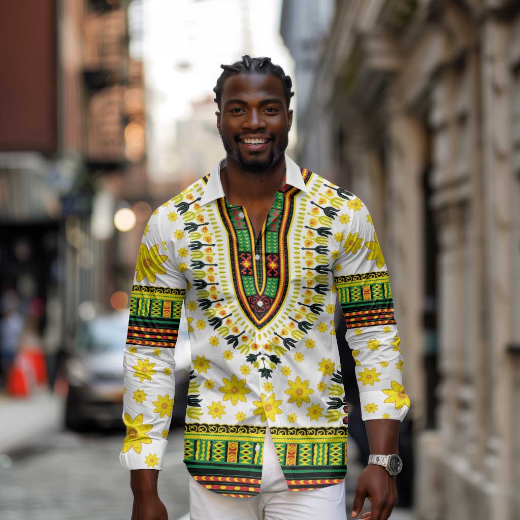 Afro Enkutatash Dashiki and Adey Abeba Long Sleeve Button Shirt