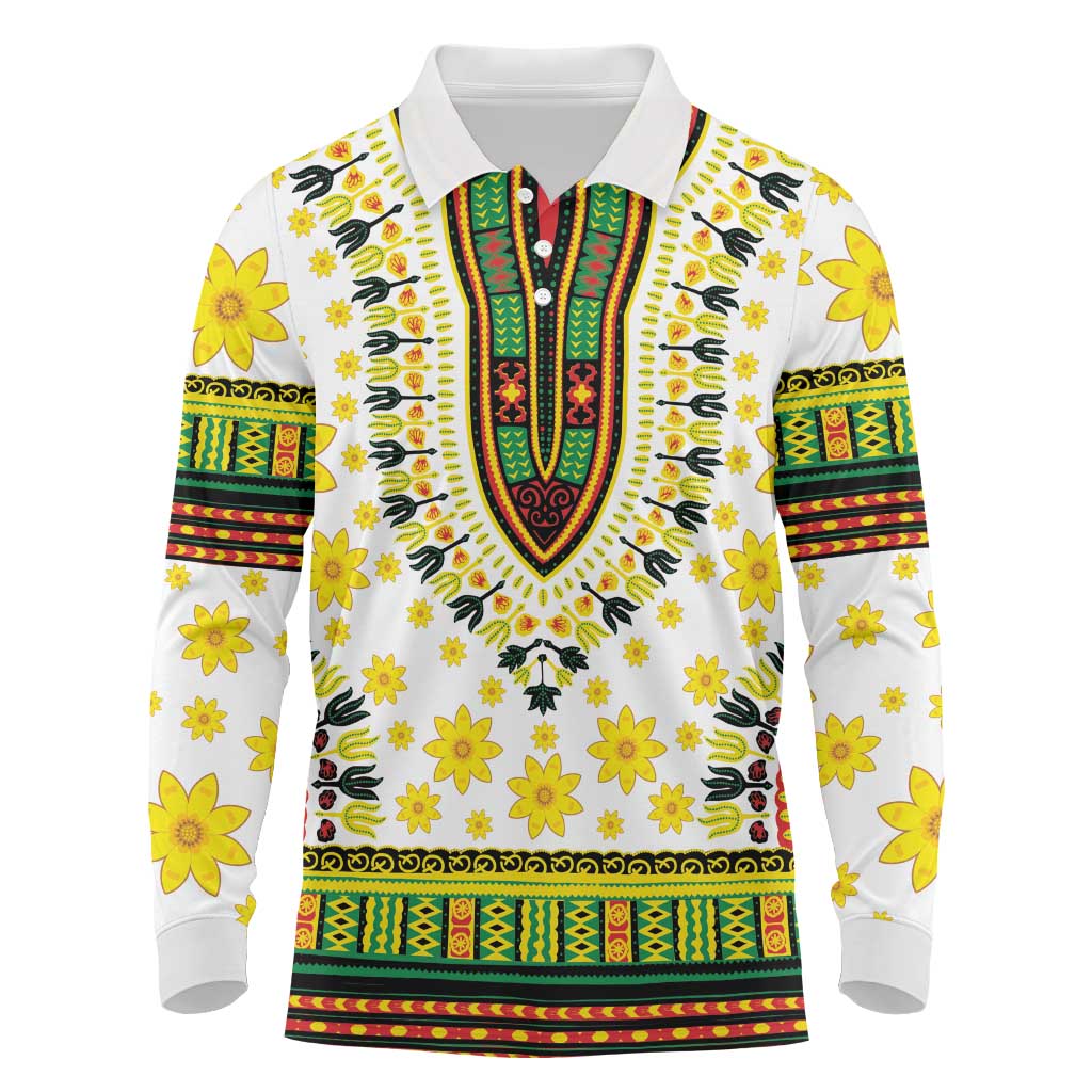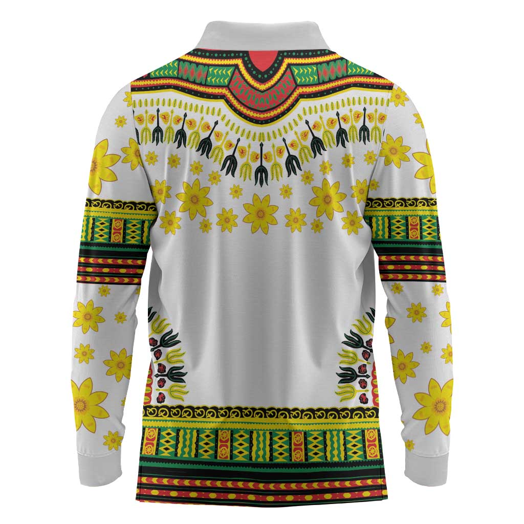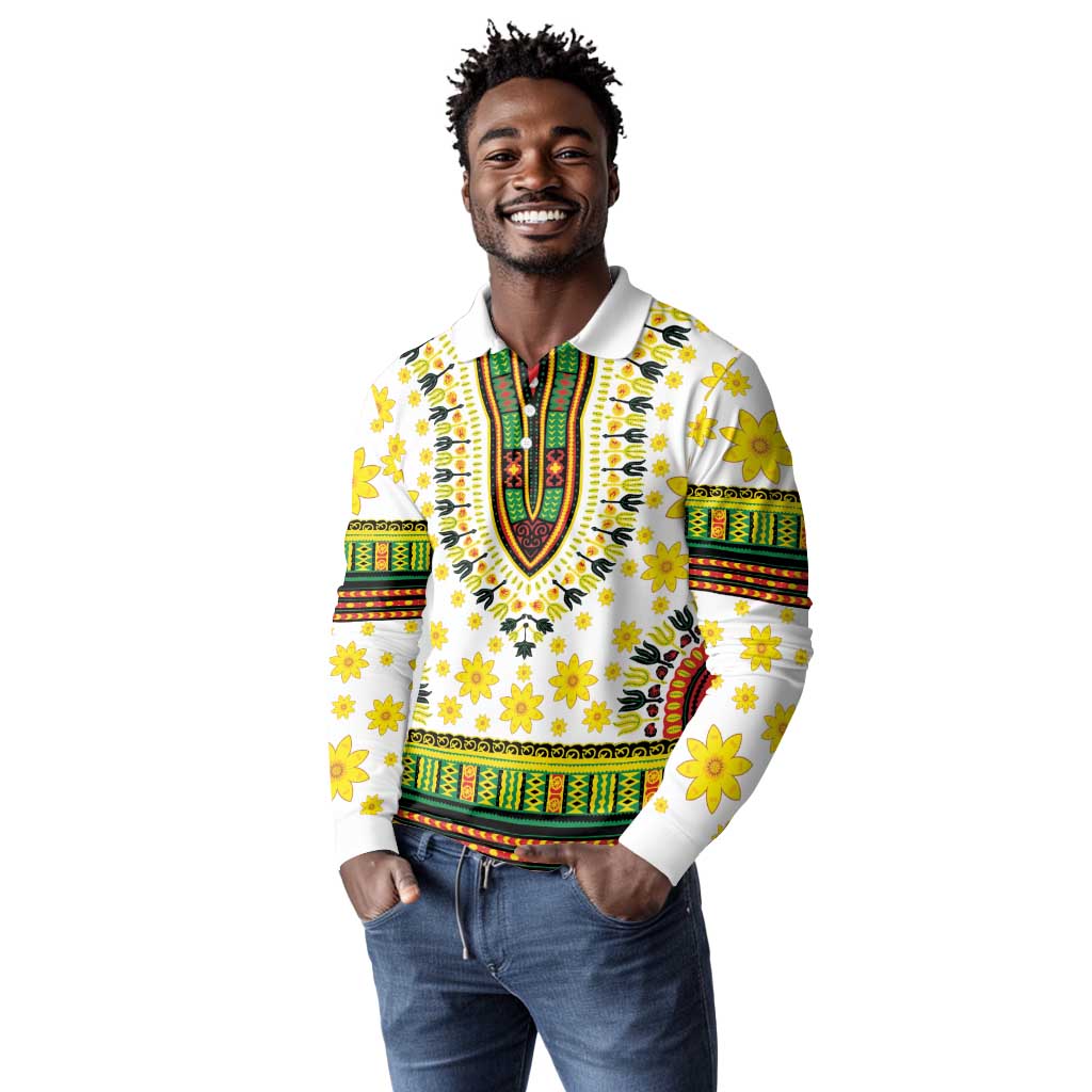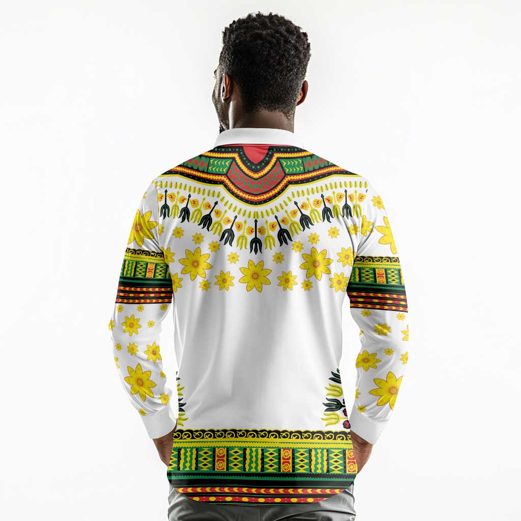 Afro Enkutatash Dashiki and Adey Abeba Long Sleeve Polo Shirt