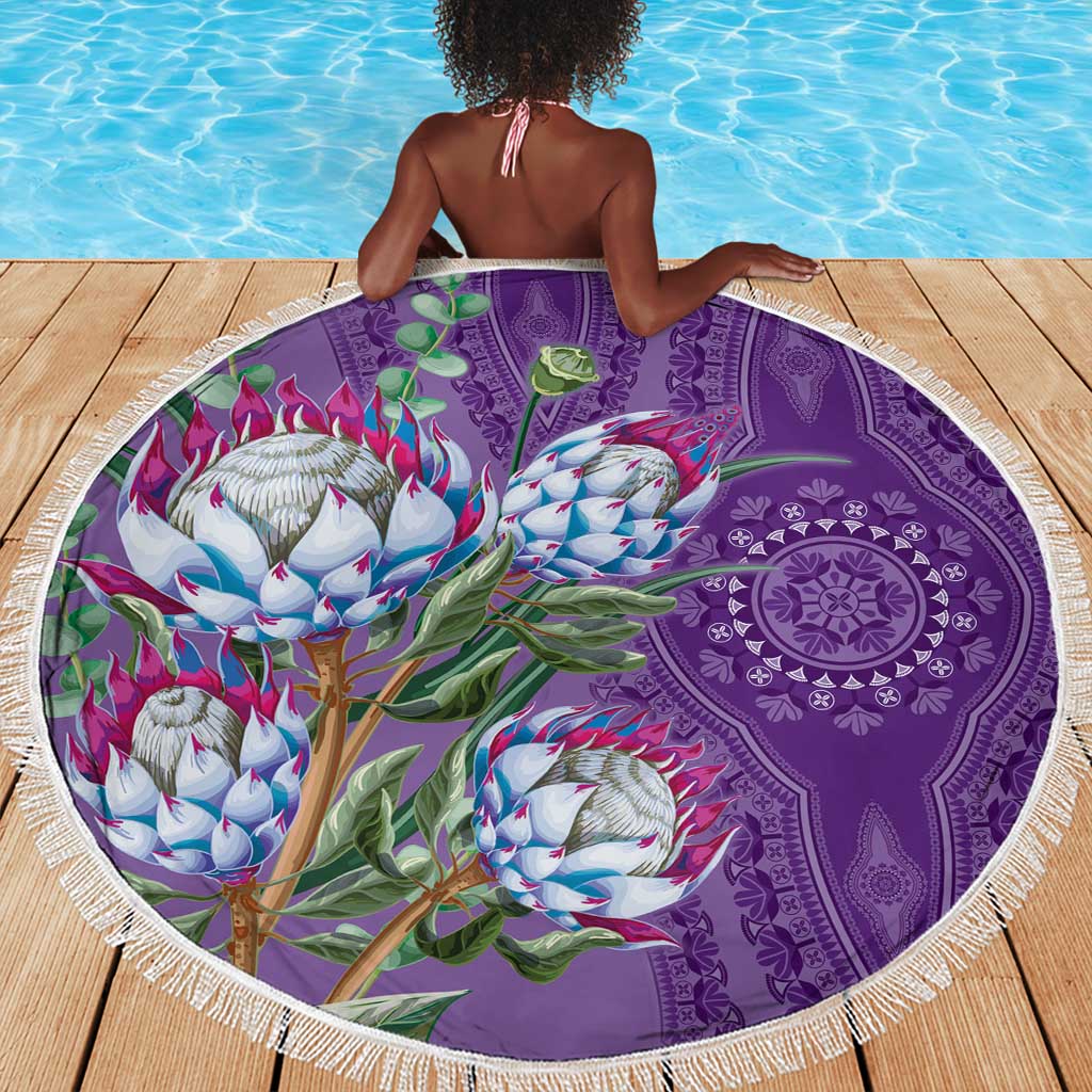 Afro King Proteas Dashiki Motif Beach Blanket Violet Style