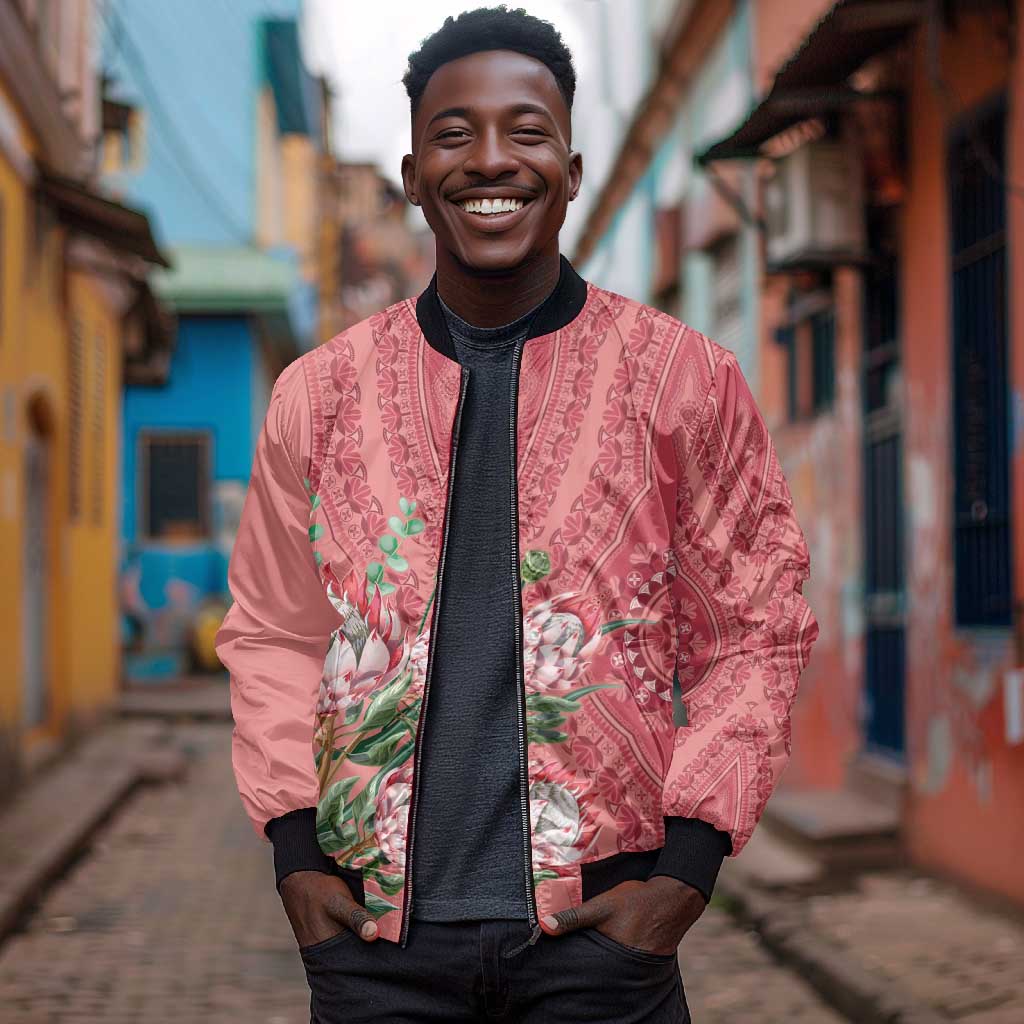 Afro King Proteas Dashiki Motif Bomber Jacket Peach Style