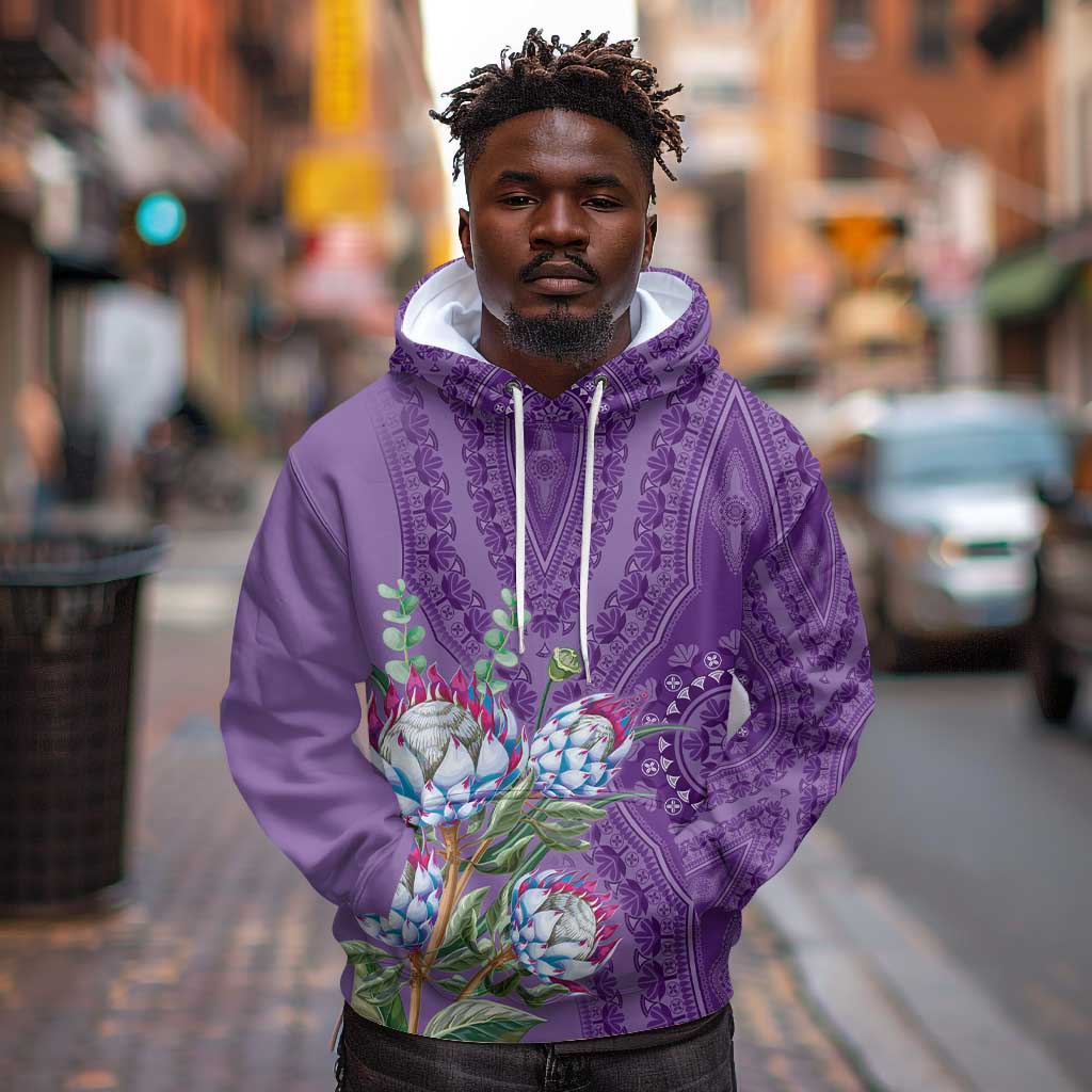 Afro King Proteas Dashiki Motif Hoodie Violet Style