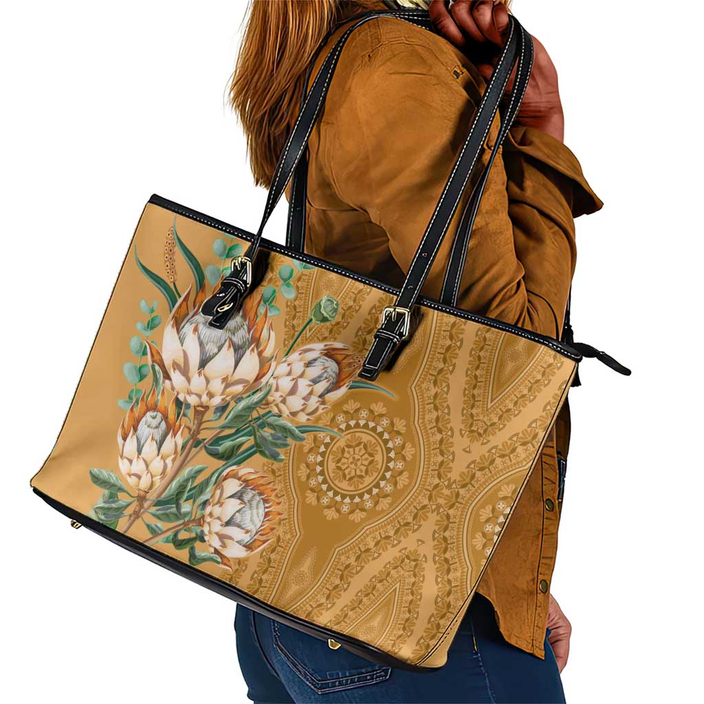 Afro King Proteas Dashiki Motif Leather Tote Bag Gold Style