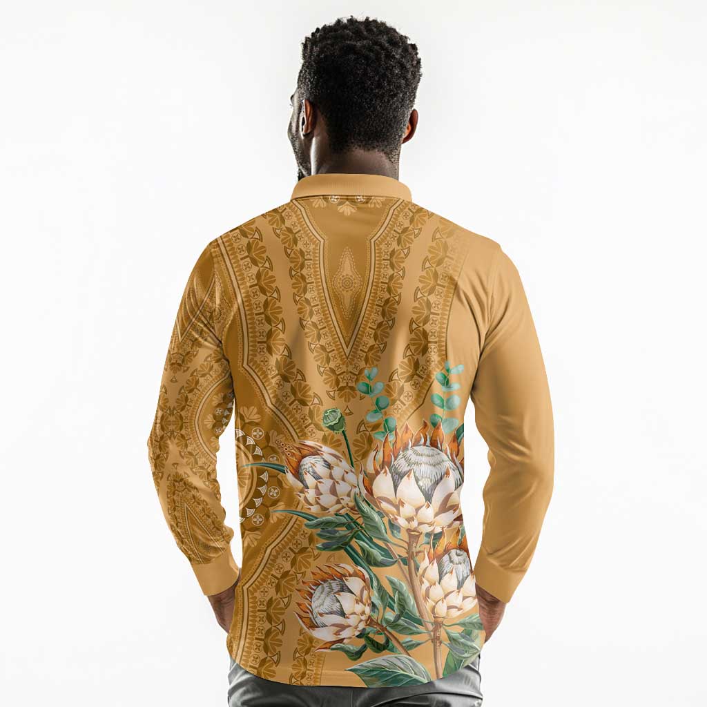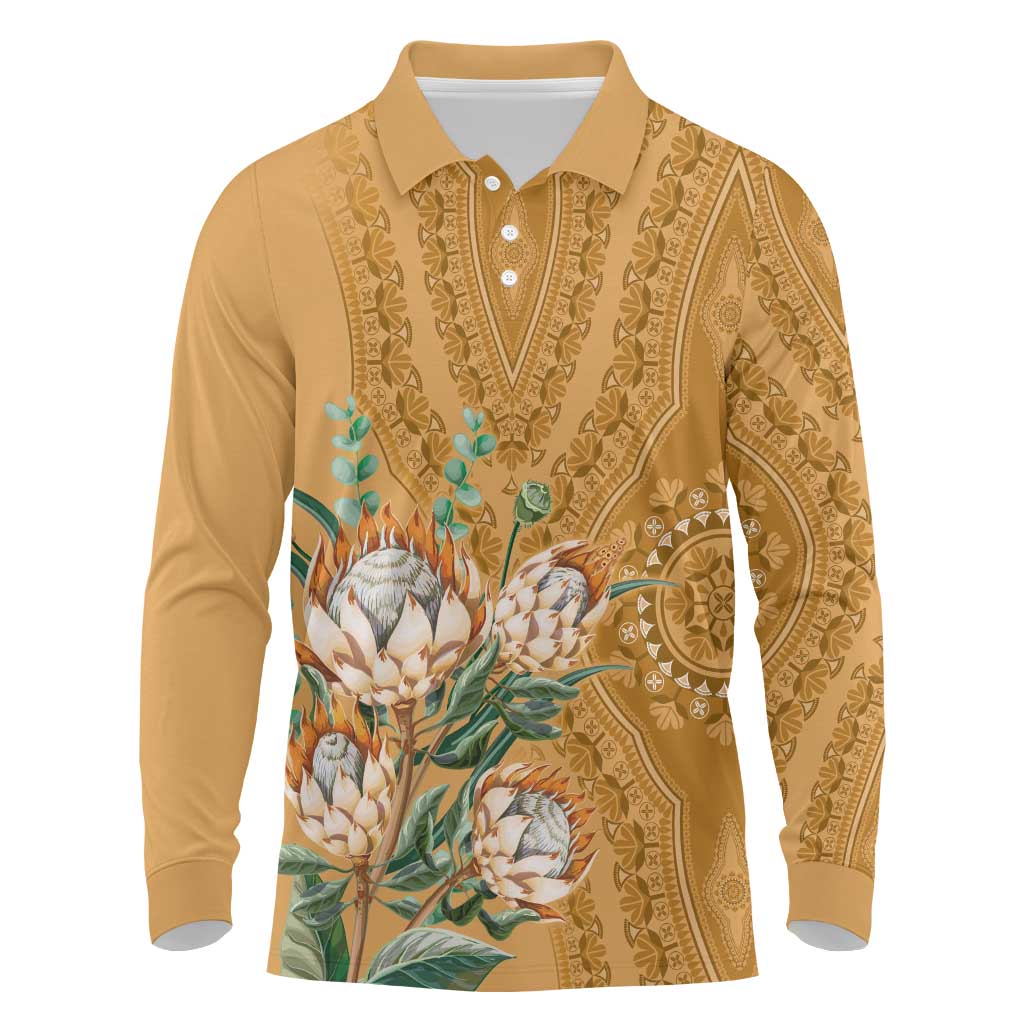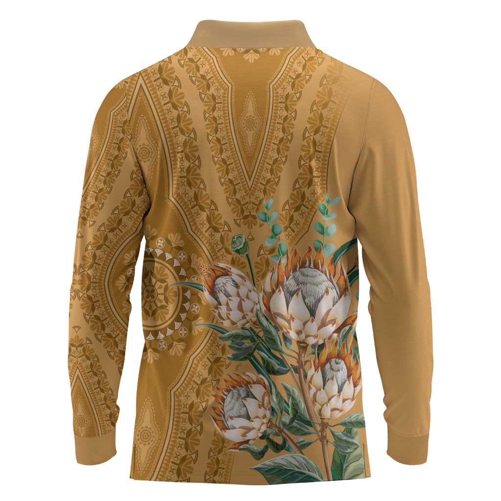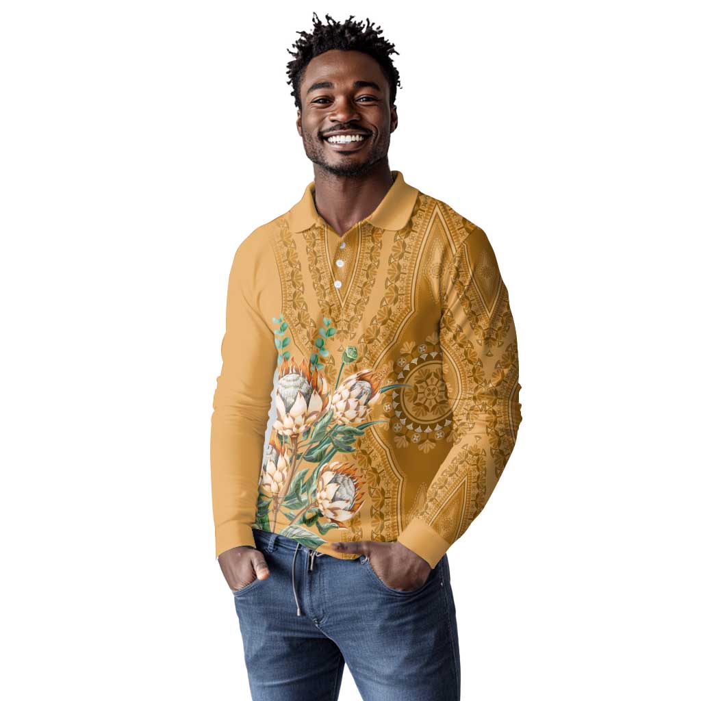 Afro King Proteas Dashiki Motif Long Sleeve Polo Shirt Gold Style