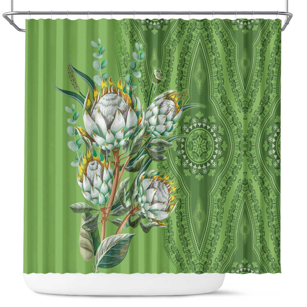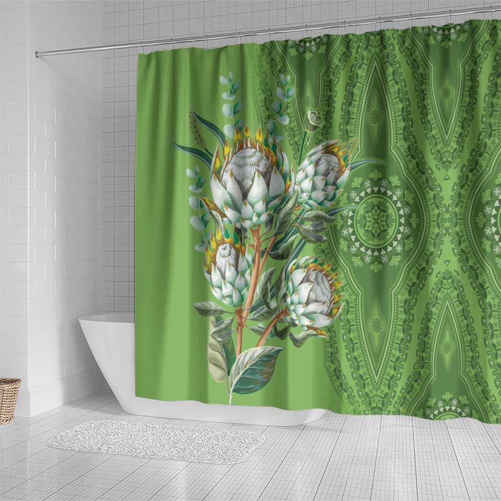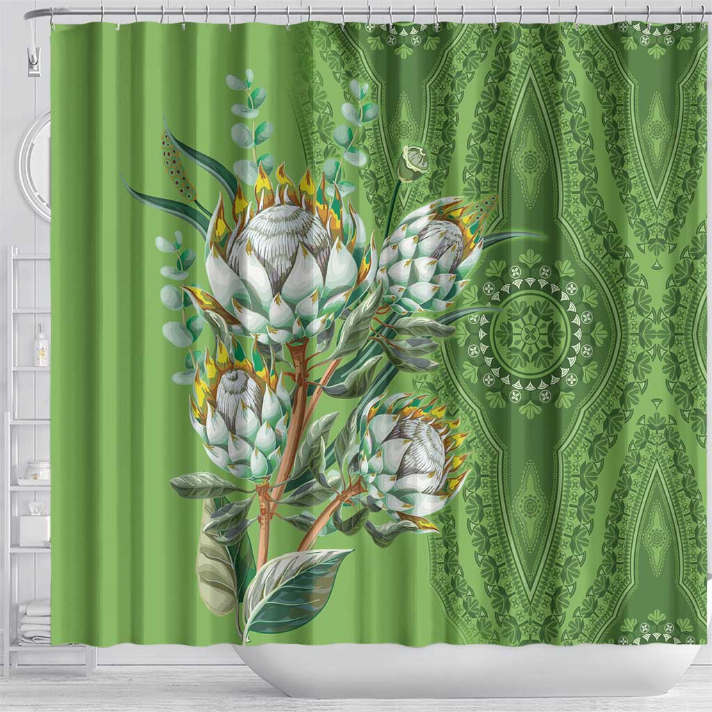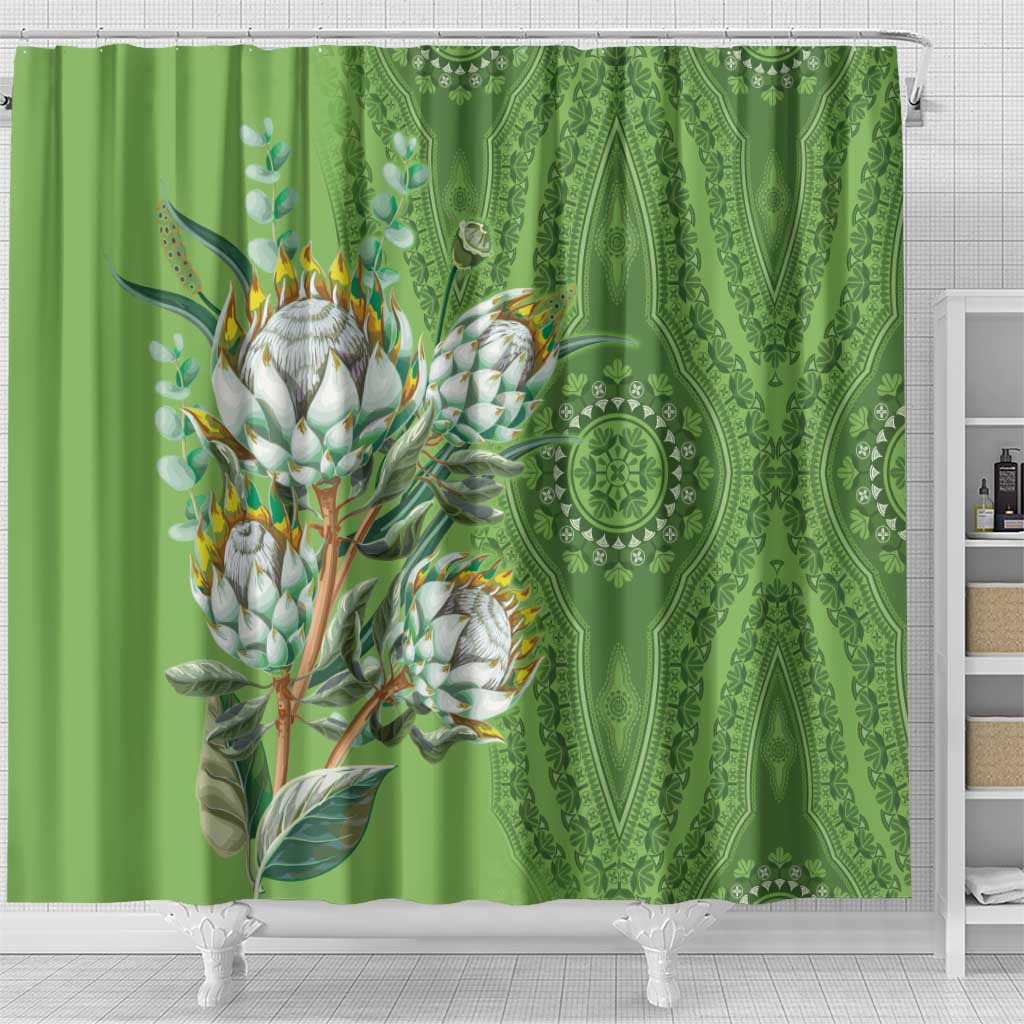 Afro King Proteas Dashiki Motif Shower Curtain Green Style
