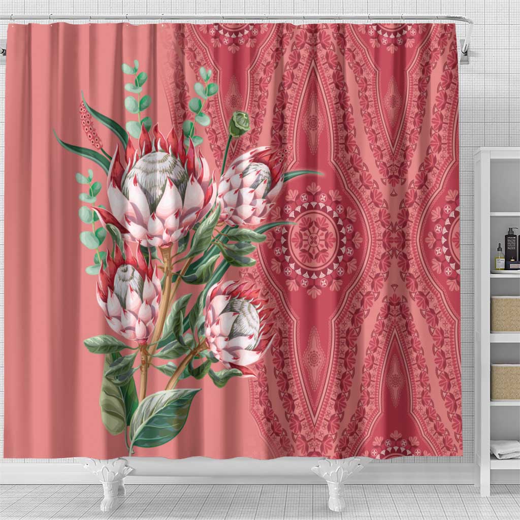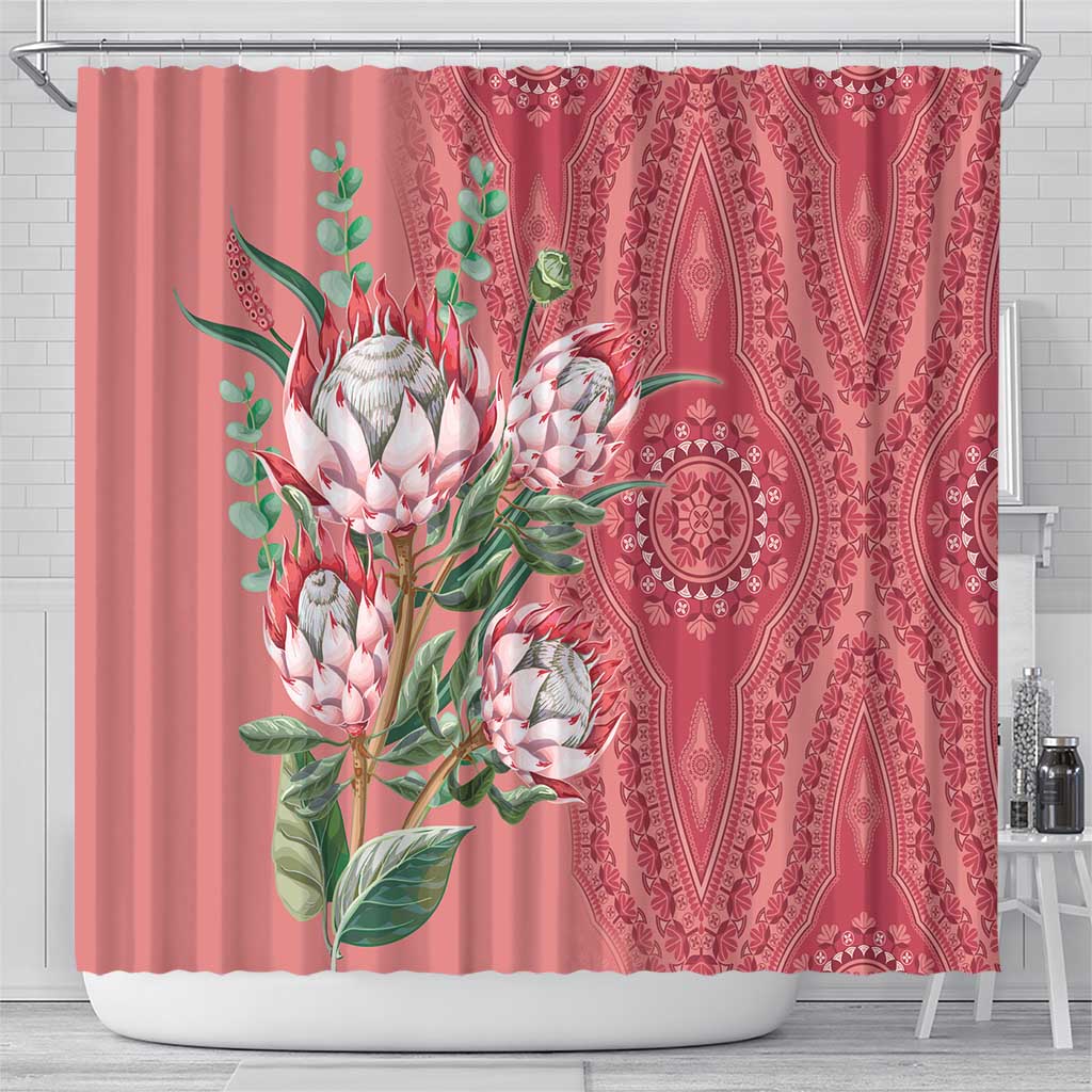 Afro King Proteas Dashiki Motif Shower Curtain Peach Style