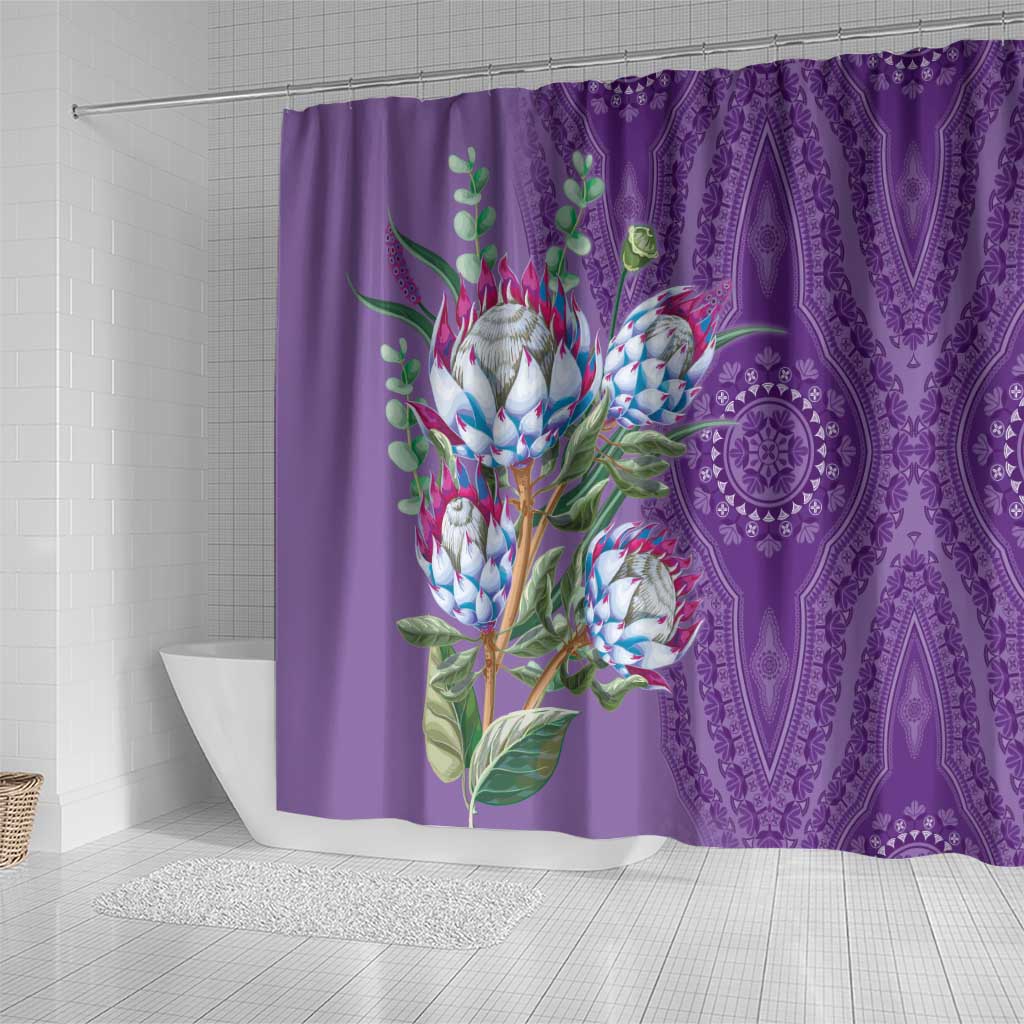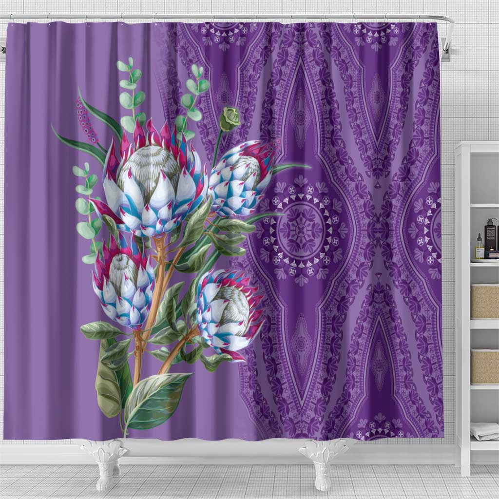 Afro King Proteas Dashiki Motif Shower Curtain Violet Style