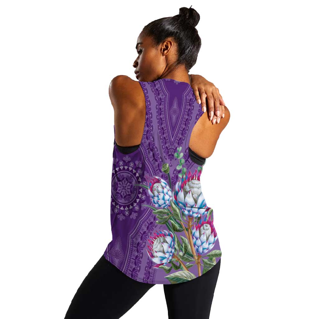 Afro King Proteas Dashiki Motif Women Racerback Tank Violet Style