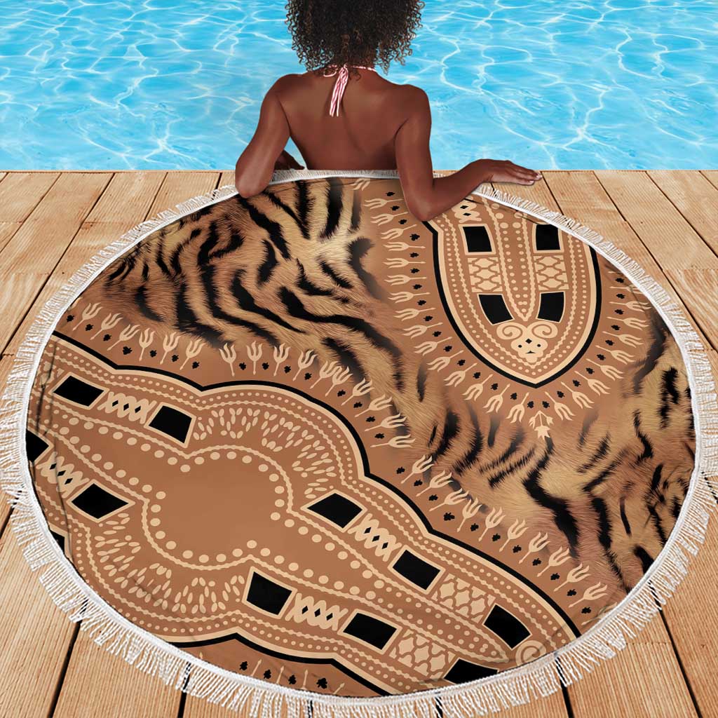 Afro Tiger Mix Dashiki Tribal Pattern Beach Blanket