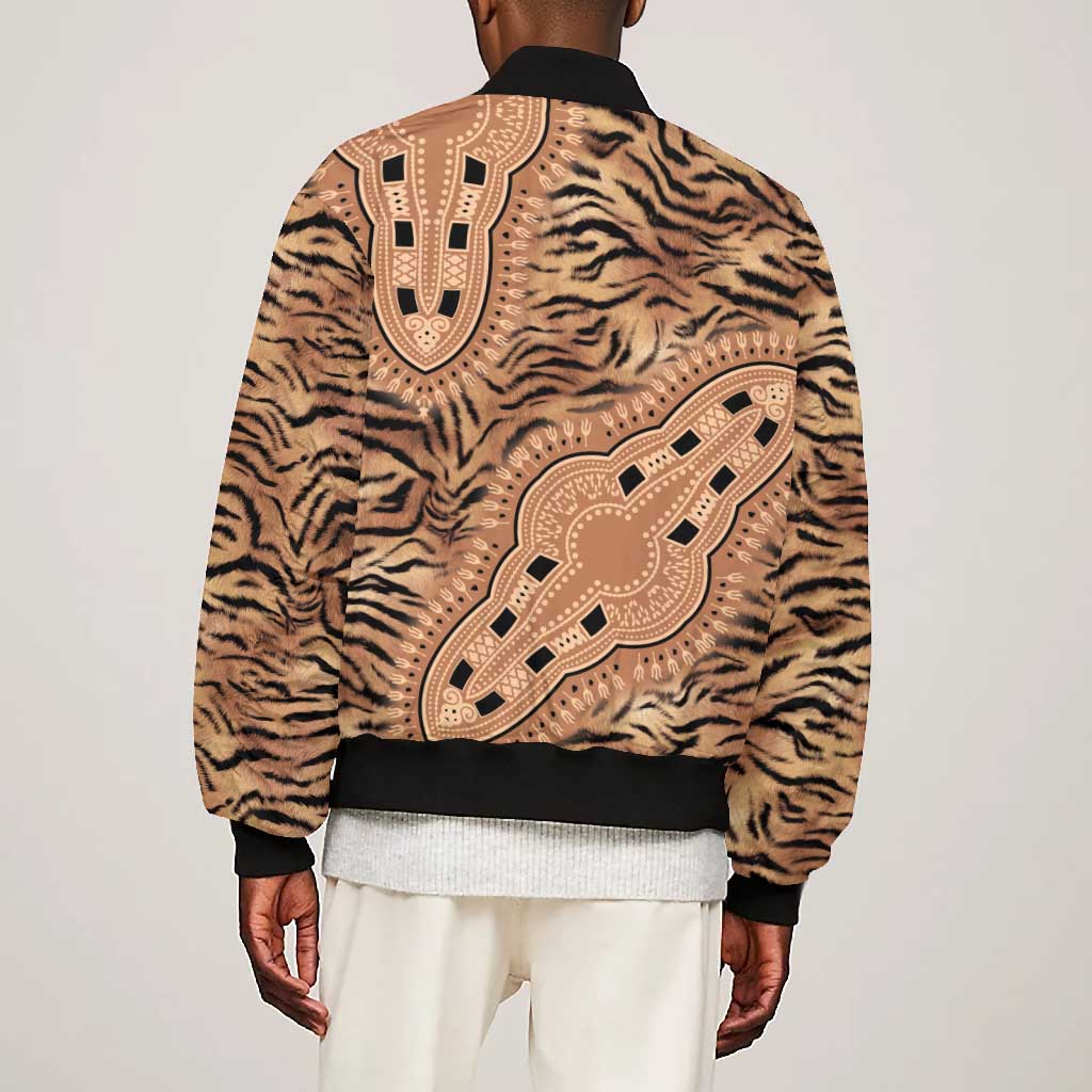 Afro Tiger Mix Dashiki Tribal Pattern Bomber Jacket