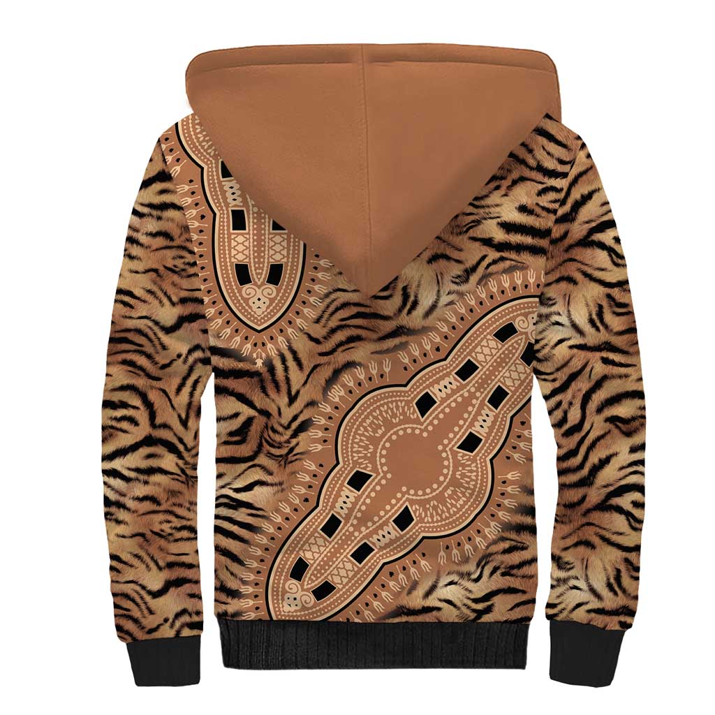 Afro Tiger Mix Dashiki Tribal Pattern Sherpa Hoodie