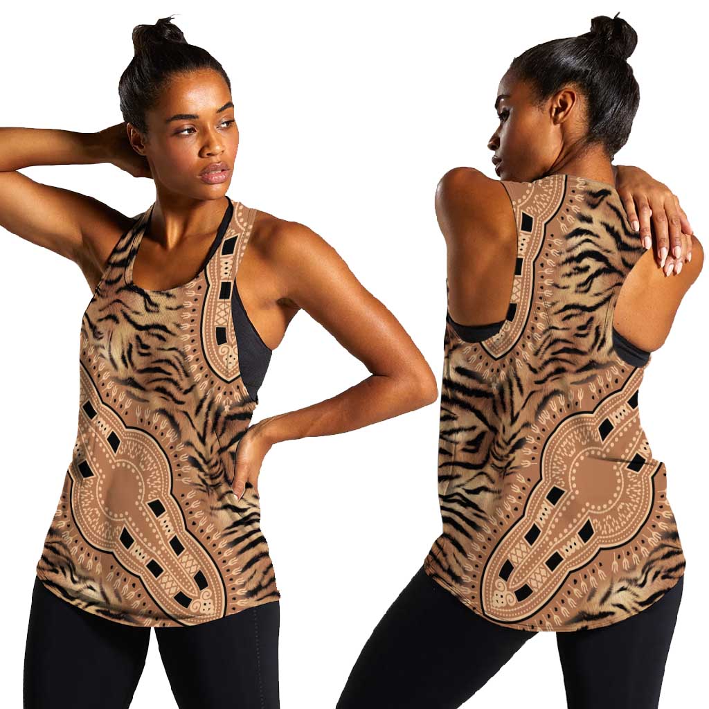 Afro Tiger Mix Dashiki Tribal Pattern Women Racerback Tank