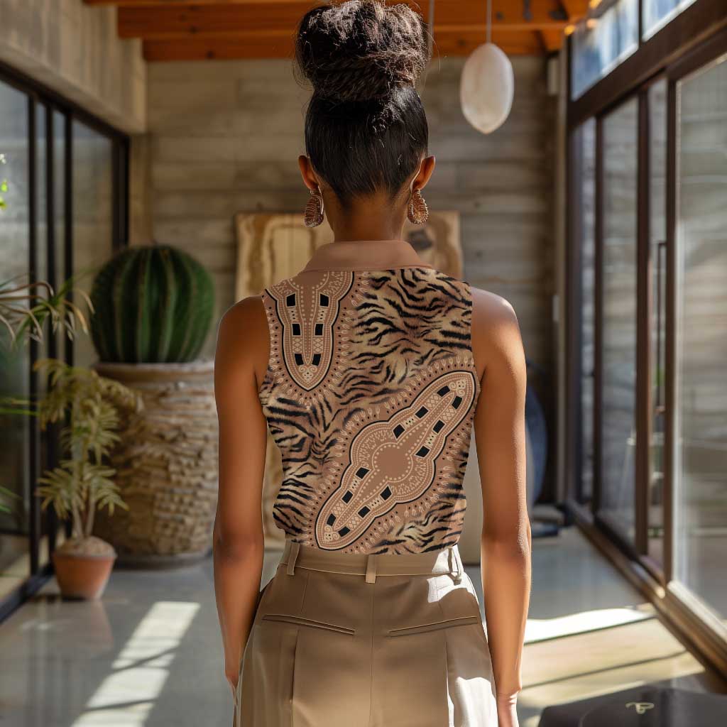 Afro Tiger Mix Dashiki Tribal Pattern Women Sleeveless Polo Shirt
