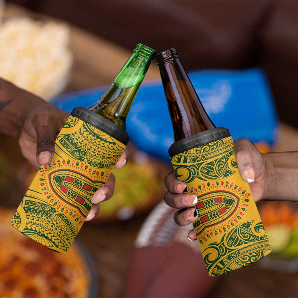 Dashiki and Polynesian Pattern 4 in 1 Can Cooler Tumbler Afro Pacific Culture Red Version